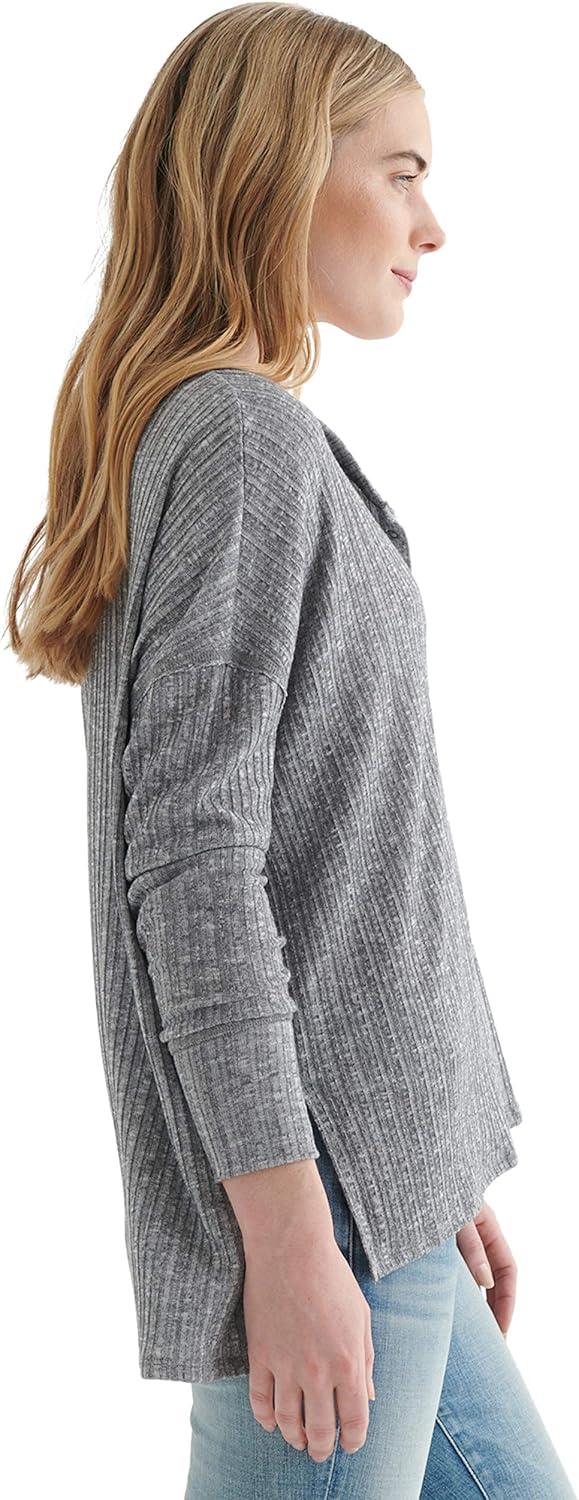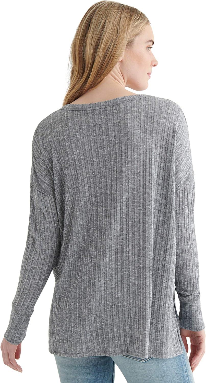 Lucky Brand Women’s Long Sleeve Rib Soft Henley Top(Medium Heather Grey)