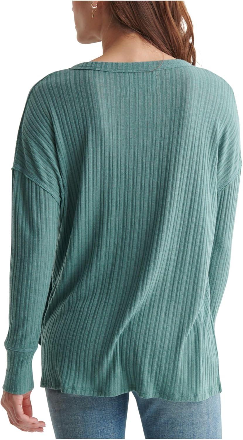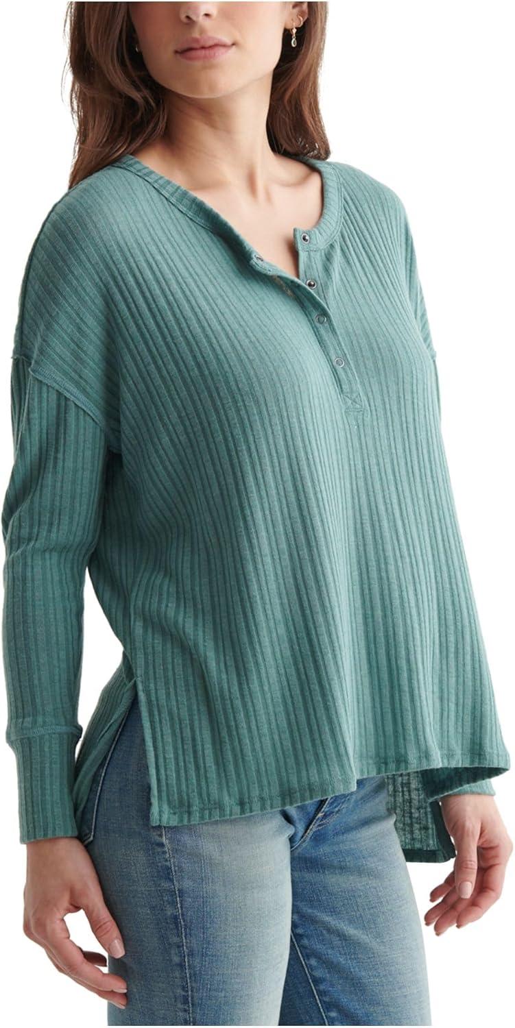Lucky Brand Women’s Long Sleeve Rib Soft Henley Top(Blue Mirage)
