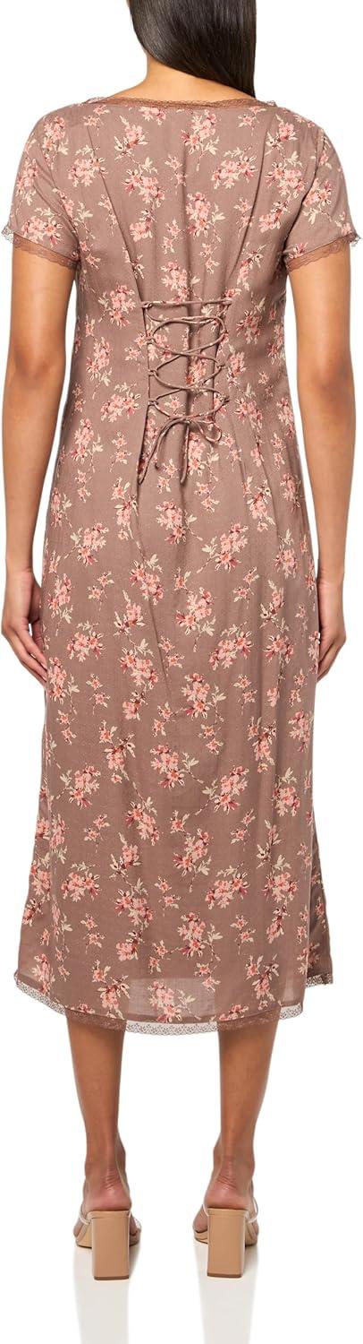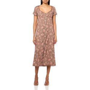 Lucky Brand Women’s Lace Trimmed Short Sleeve Midi Dress(Taupe Floral)