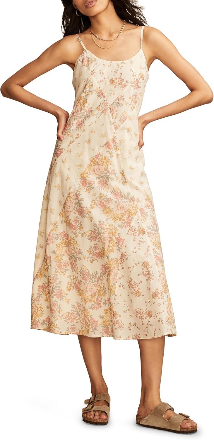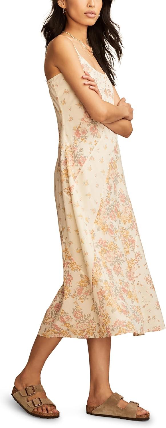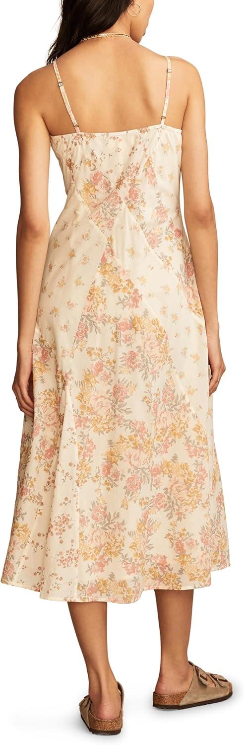 Lucky Brand Women’s Patchwork Print Midi Slip Dress(Yellow Floral)