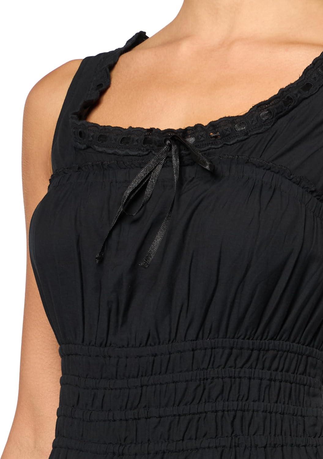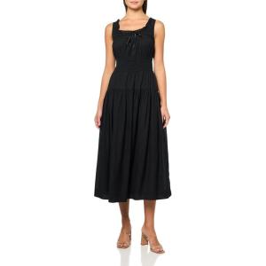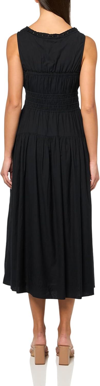 Lucky Brand Women’s Poplin Lace Trimmed Smocked Midi Dress(Caviar)
