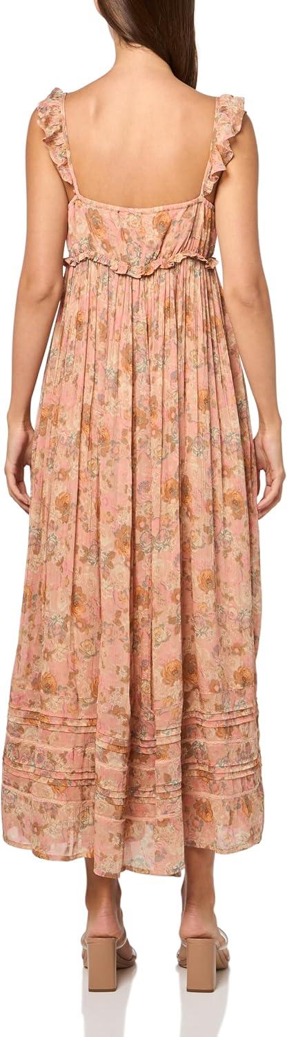 Lucky Brand Women’s Printed Ruffle Sleeve Midi Dress(Pink Floral)