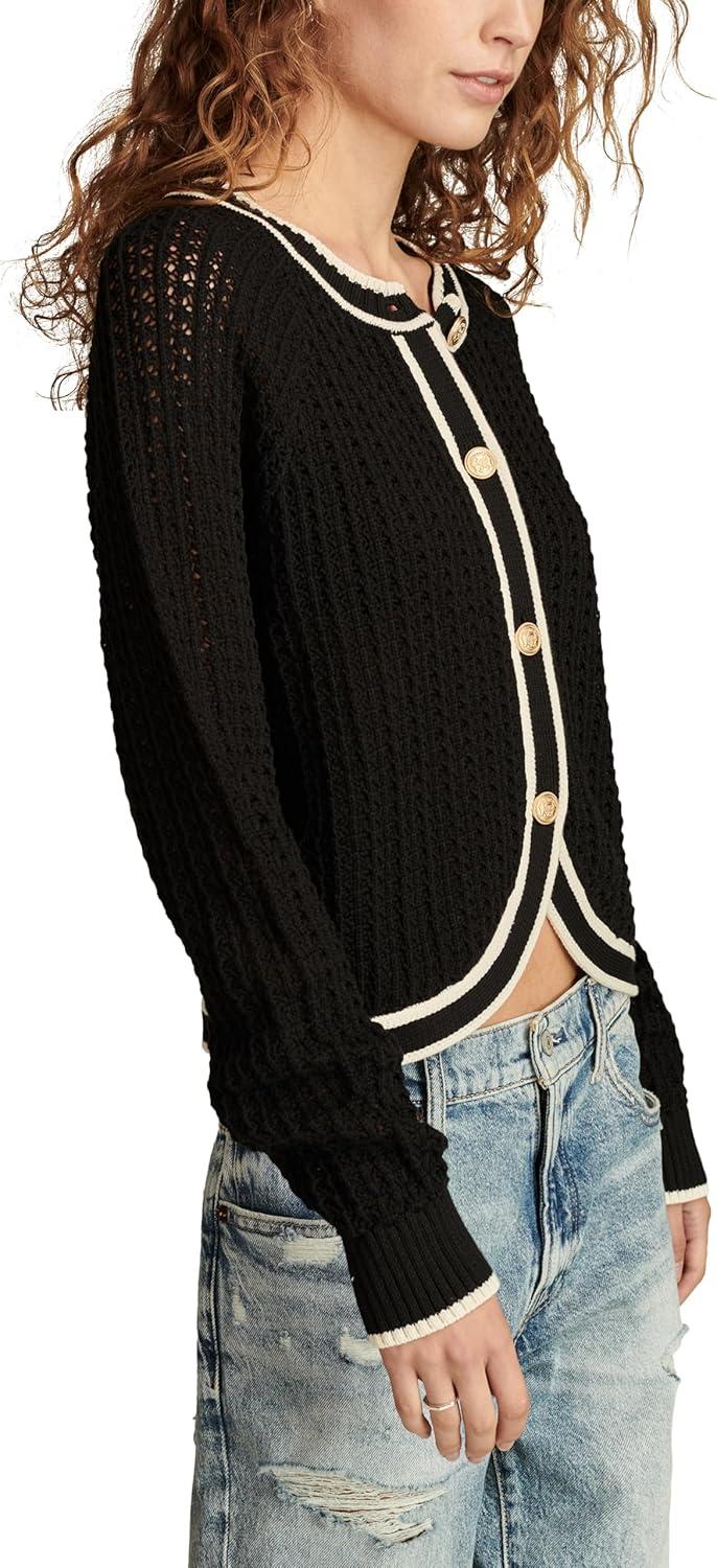 Lucky Brand Women’s Cable Crew Cardi(Dark Black)