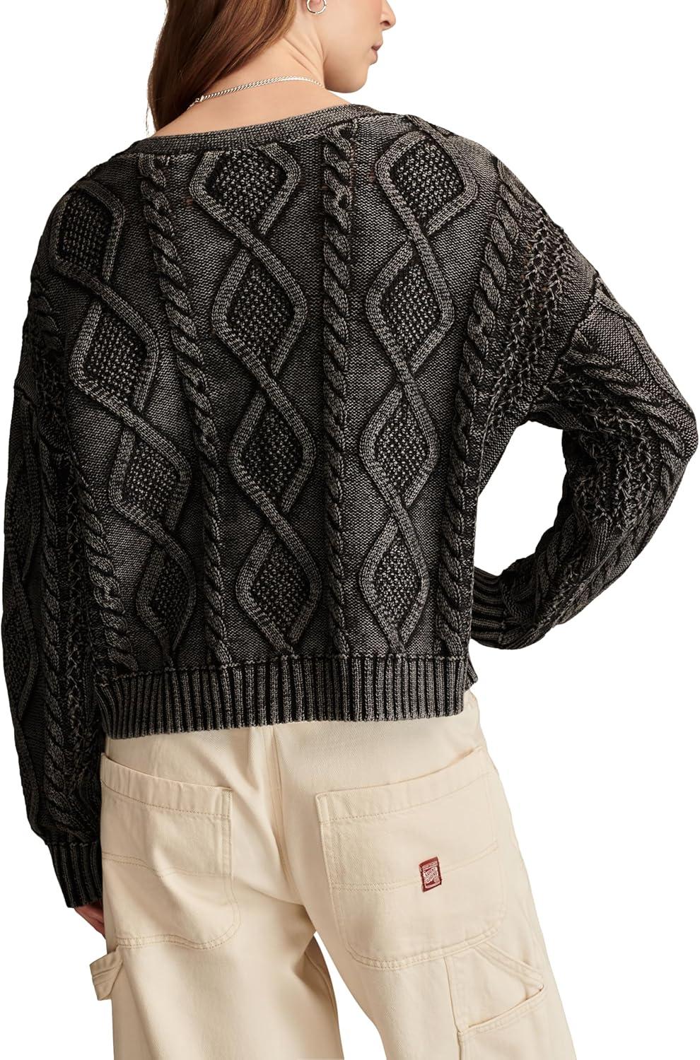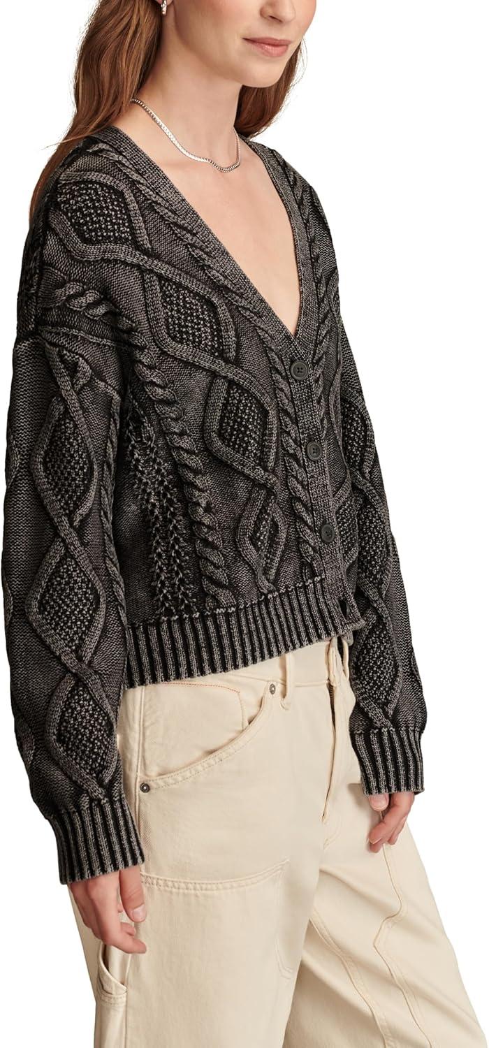 Lucky Brand Women’s Cable Stitch Cardigan(Black Heavy Acid Washed)
