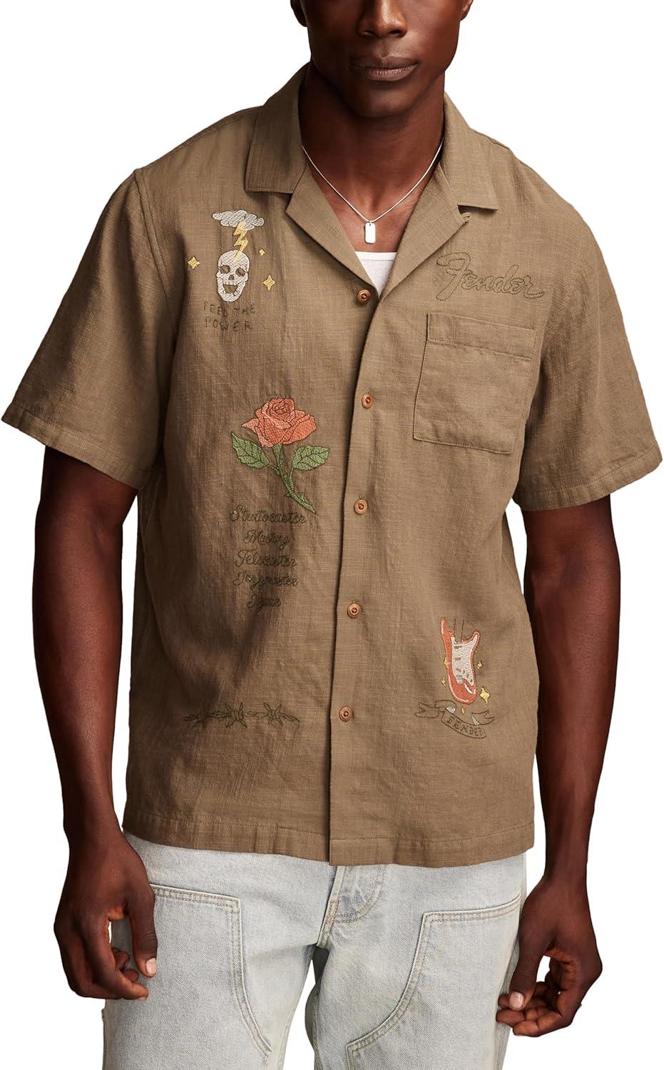 Lucky Brand Men’s Fender Club Short Sleeve Shirt(Dusty Olive)