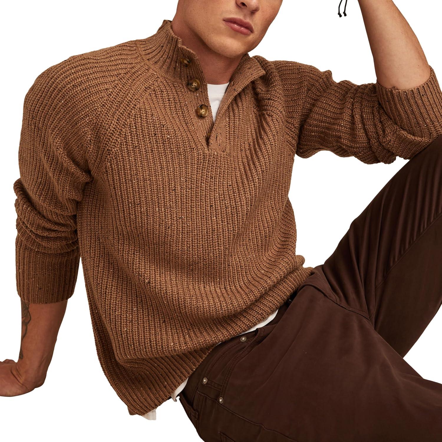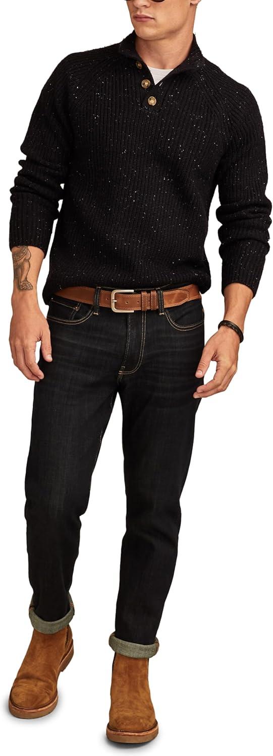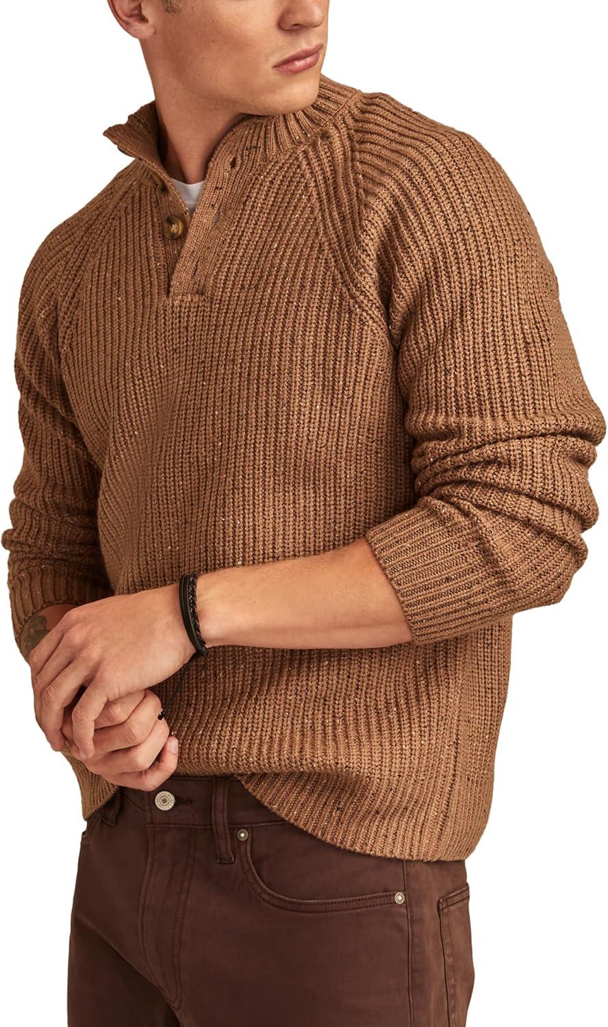 Lucky Brand Mens NEP 1/4 Mock Neck Sweater(209 Mahogany)