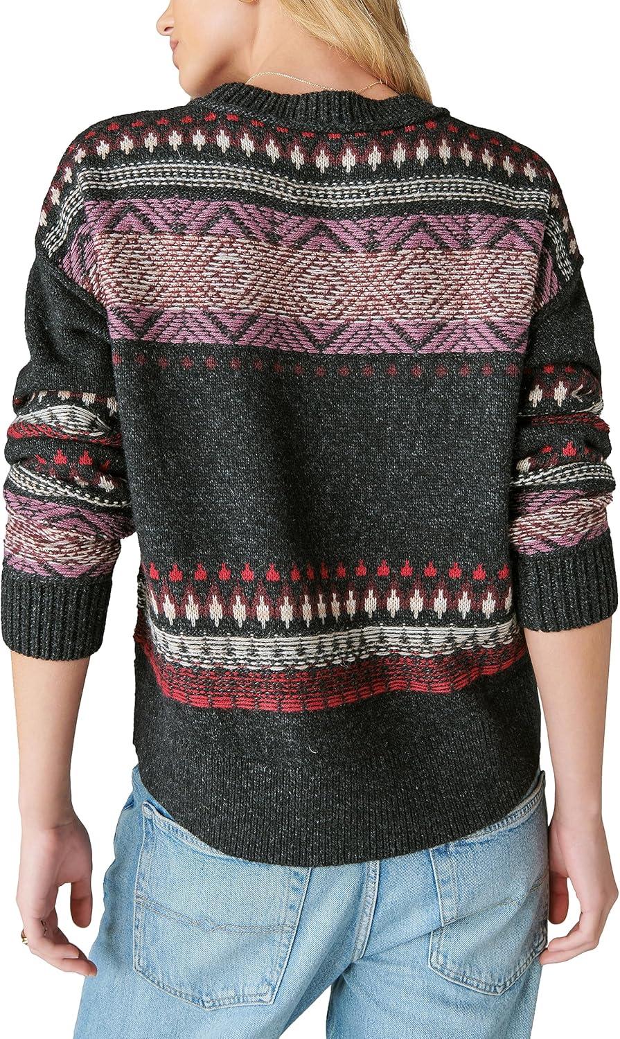 Lucky Brand Women’s Fairisle Crew Sweater(Black Combo)