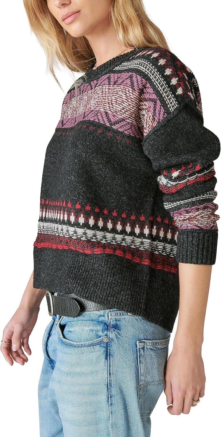 Lucky Brand Women’s Fair Isle Crew Neck(Charcoal Multi)