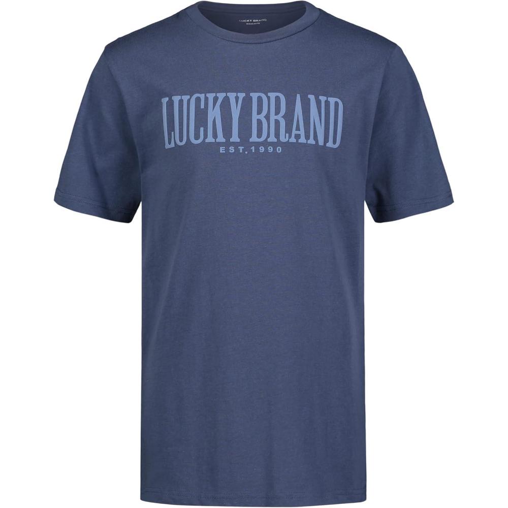 Lucky Brand Boys’ Short Sleeve Graphic Crew Neck T-Shirt, Soft, Comfortable, Relaxed Fit(Dark Denim Puff)