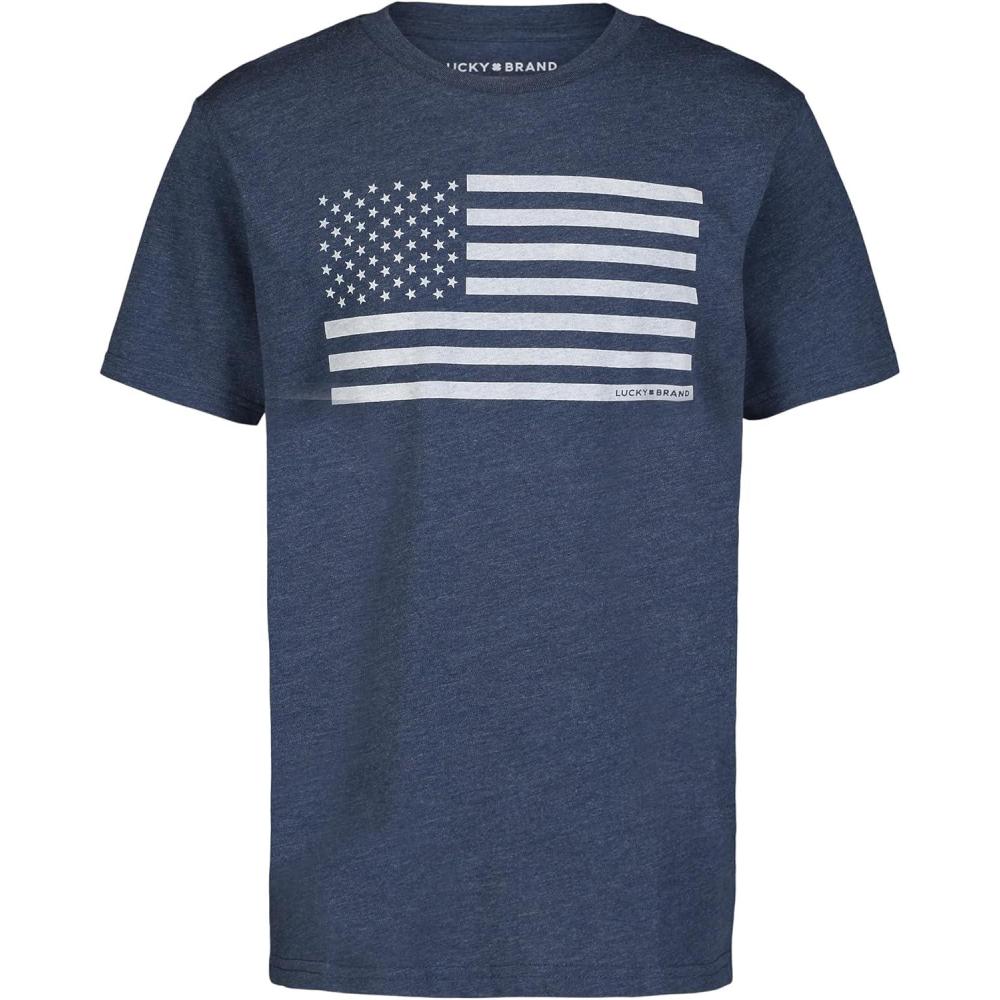 Lucky Brand Boys’ Short Sleeve Graphic Crew Neck T-Shirt, Soft, Comfortable, Relaxed Fit(Us Flag Dark Denim Heather)