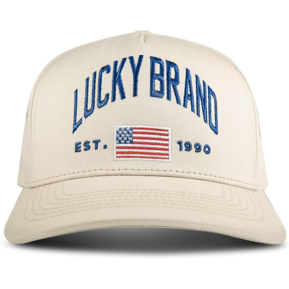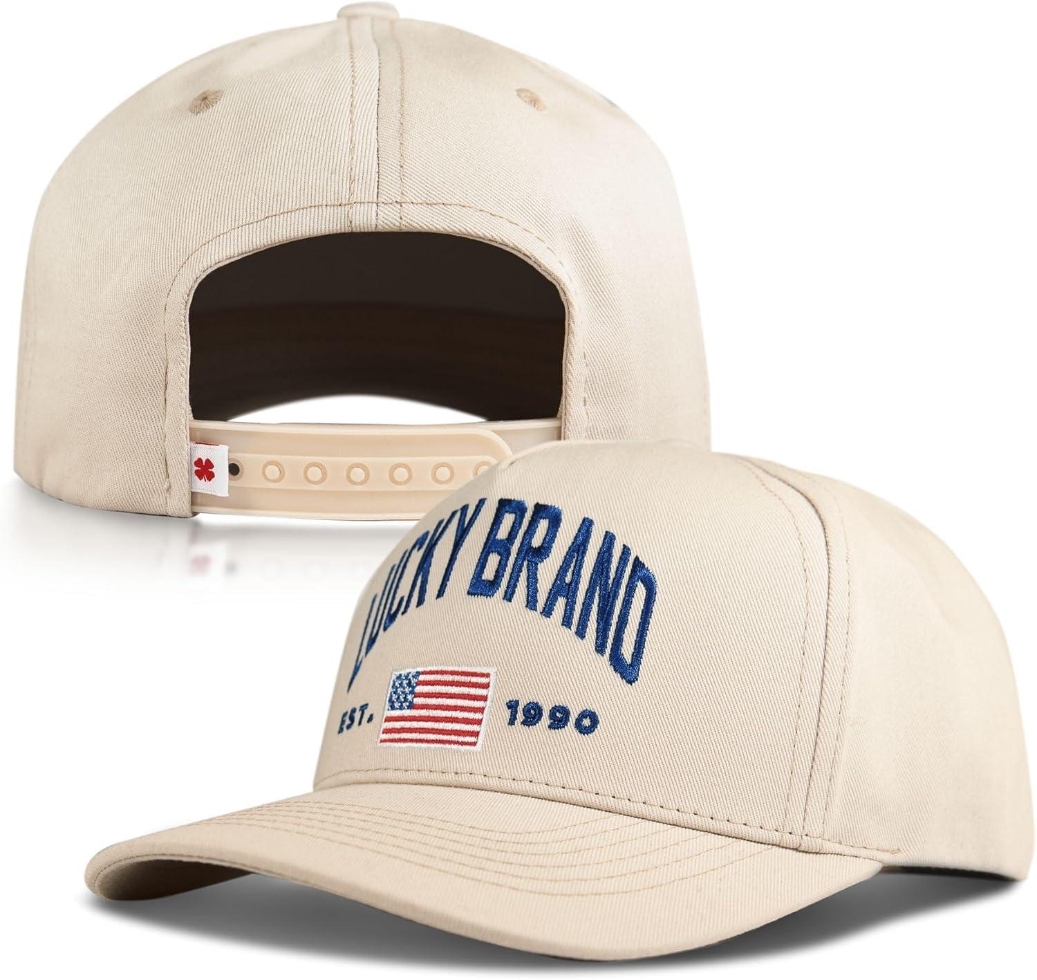 Lucky Brand Classic Cotton Adjustable | Dad Hat | Baseball Cap | Fishing | Low Profile | 5 Panel Design(Flag – Cream)