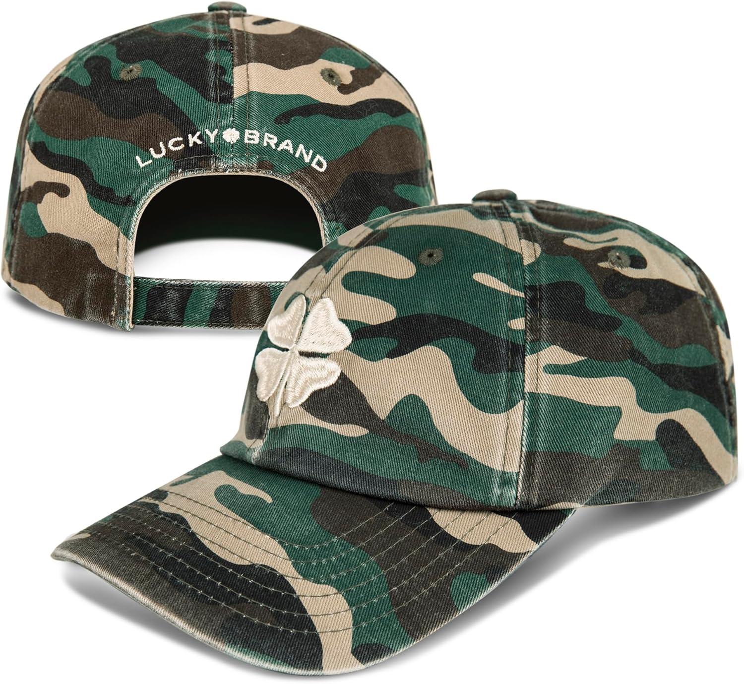 Lucky Brand Classic Cotton Hat | Adjustable | Dad Hat | Baseball Cap | Golf | Fishing | Low Profile | 5 Panel Design(Clover – Camo)