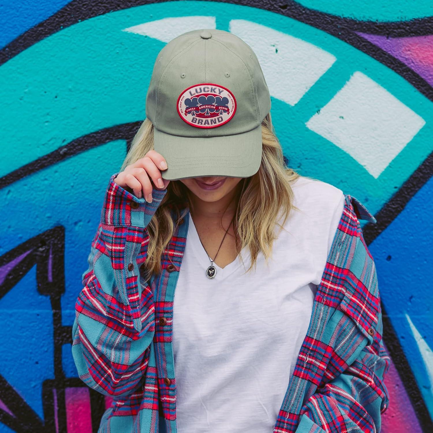 Lucky Brand Classic Cotton Hat | Adjustable | Dad Hat | Baseball Cap | Golf | Fishing | Low Profile | 5 Panel Design(Oval Clover Patch – Moss)