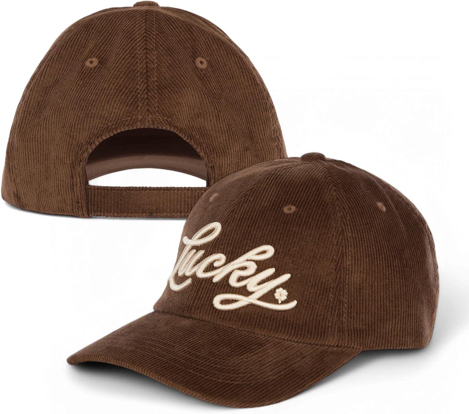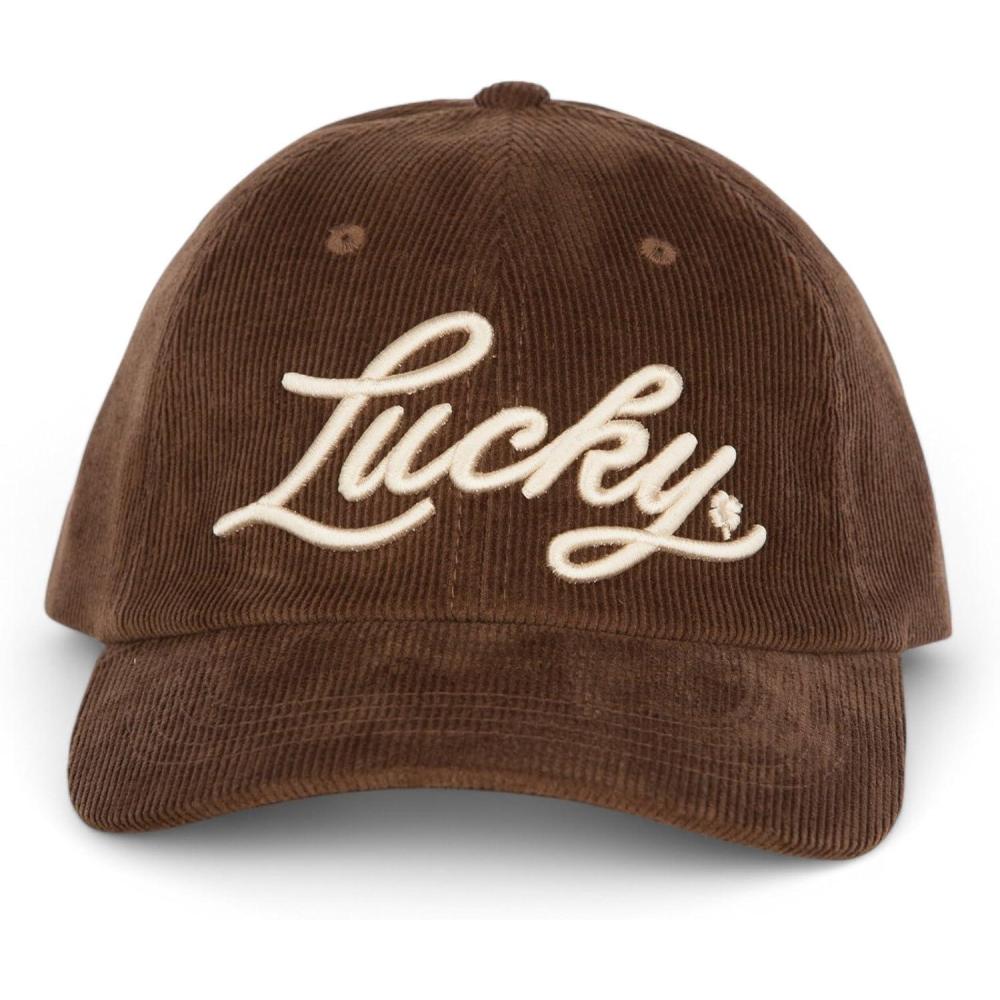 Lucky Brand Classic Cotton Hat | Adjustable | Dad Hat | Baseball Cap | Golf | Fishing | Low Profile | 5 Panel Design(Script Corduroy – Brown)