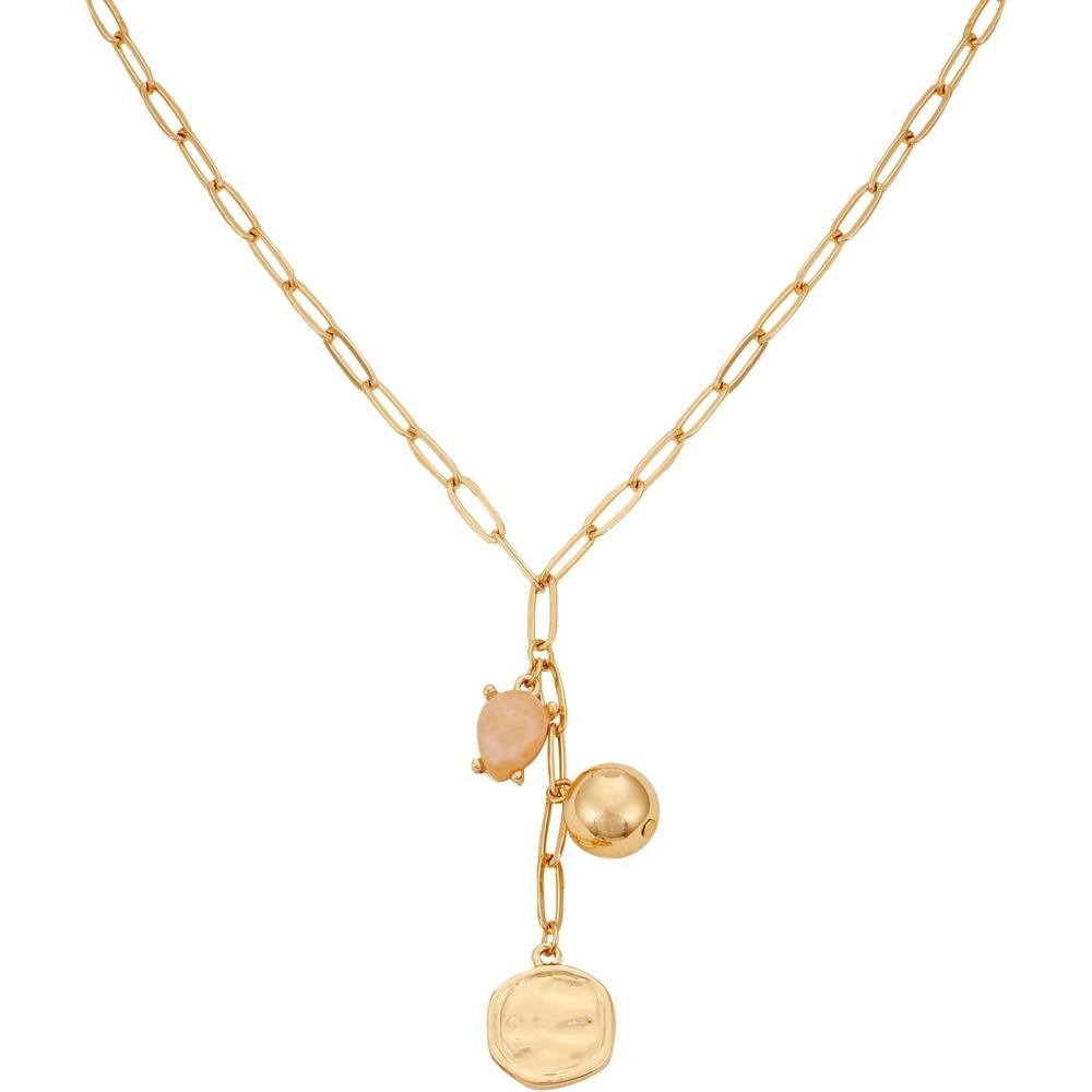 Lucky Brand Gold Plated Necklace for women with Rose Quartz Stone Pendant