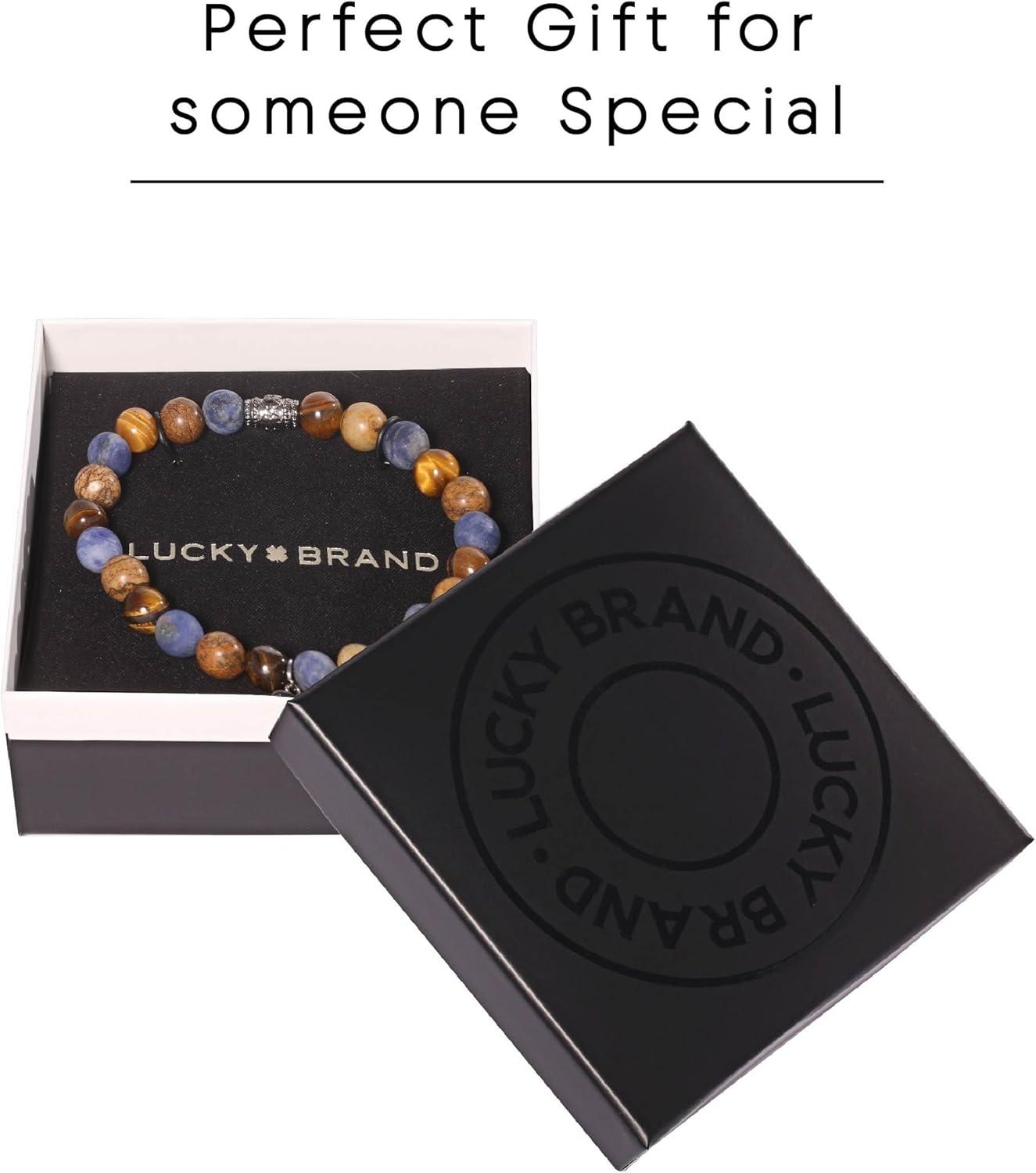 Lucky Brand Jasper and Tiger Eye Bracelet, Stretch Beaded Bracelet for Men with Logo Bead and Jasper and Tiger’s Eye Beads