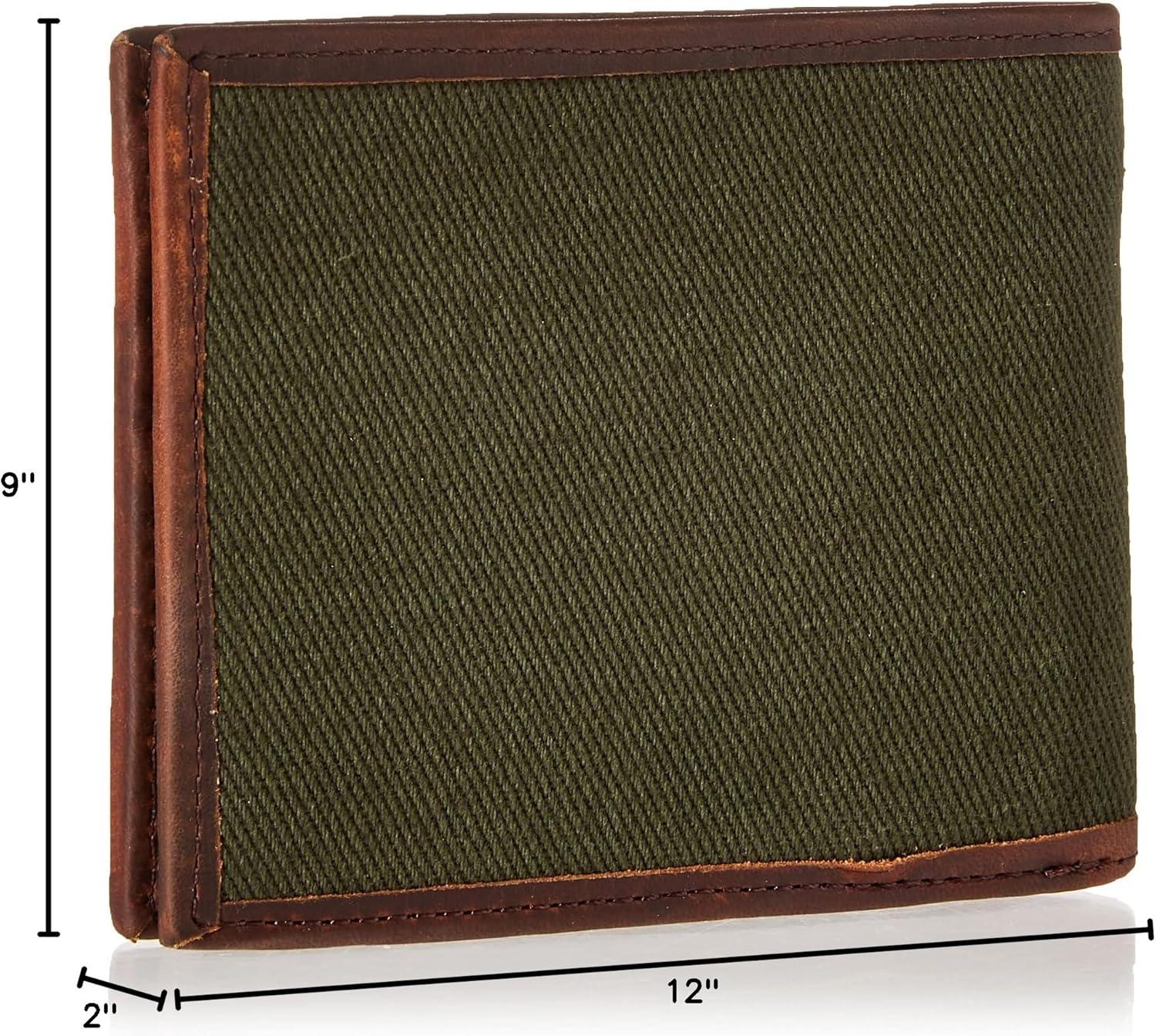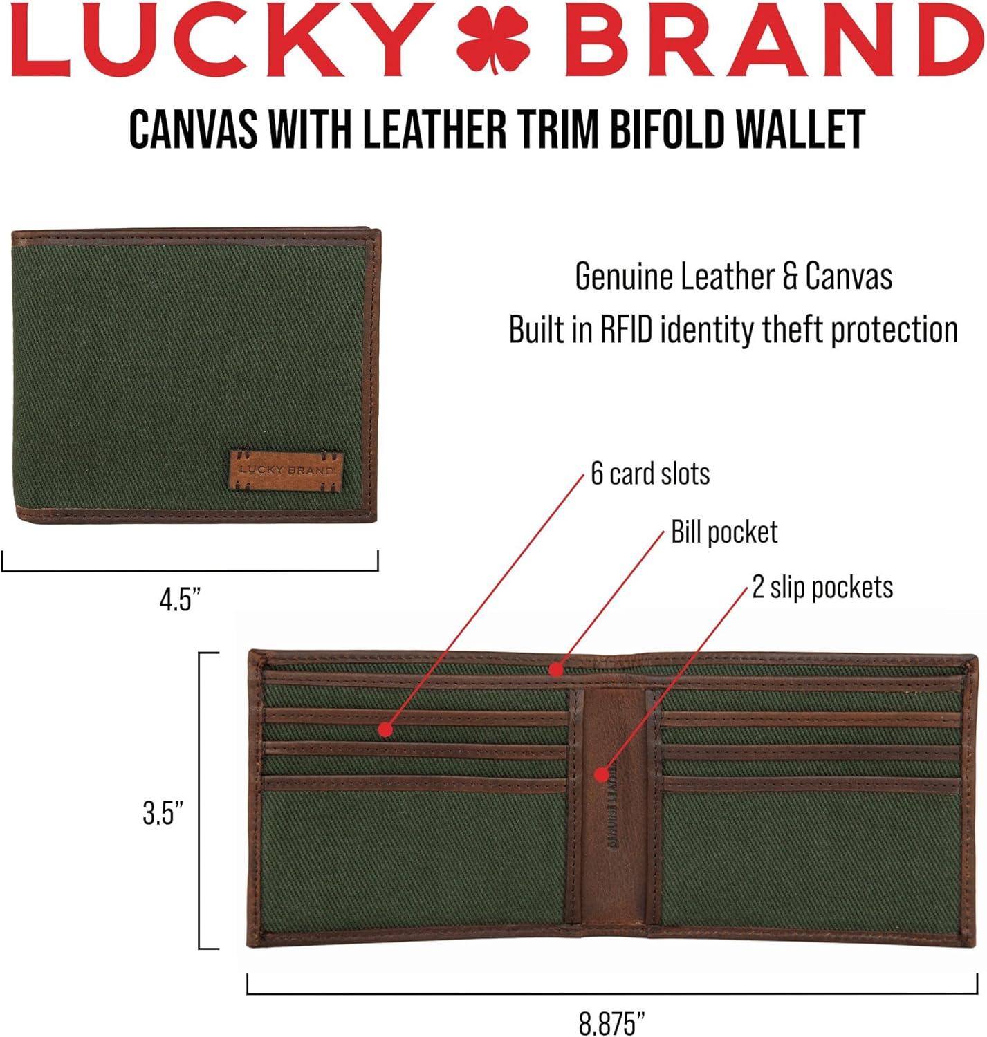 Lucky Brand Men’s Bifold Wallet | ID Window | Card Slots | Genuine Leather | Organization | Durable | Stylish(Canvas/Leather – Olive)
