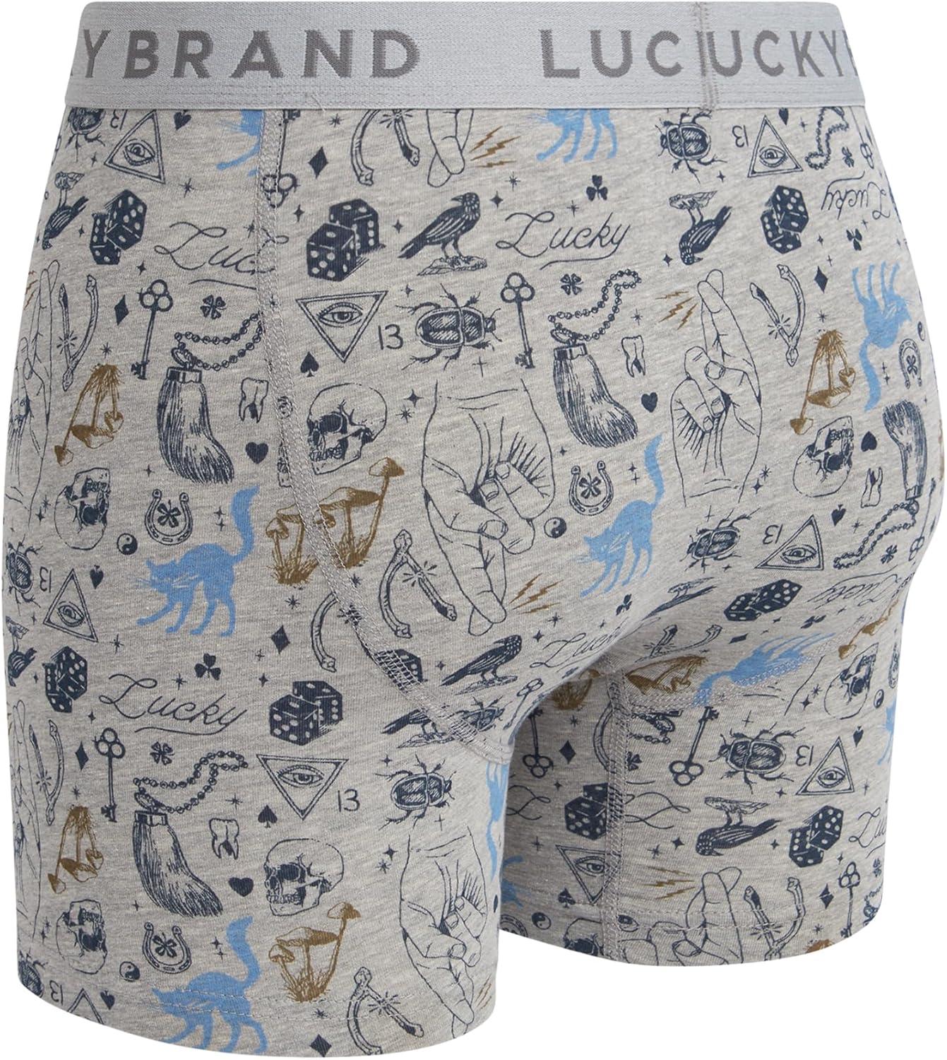 Lucky Brand Men’s Boxer Briefs – 3 Pack Soft Stretch Casual Men’s Underwear with Functional Fly Pouch Boxers (S-2XL)(Indigo/Grey Heather Print/Coronet Blue)
