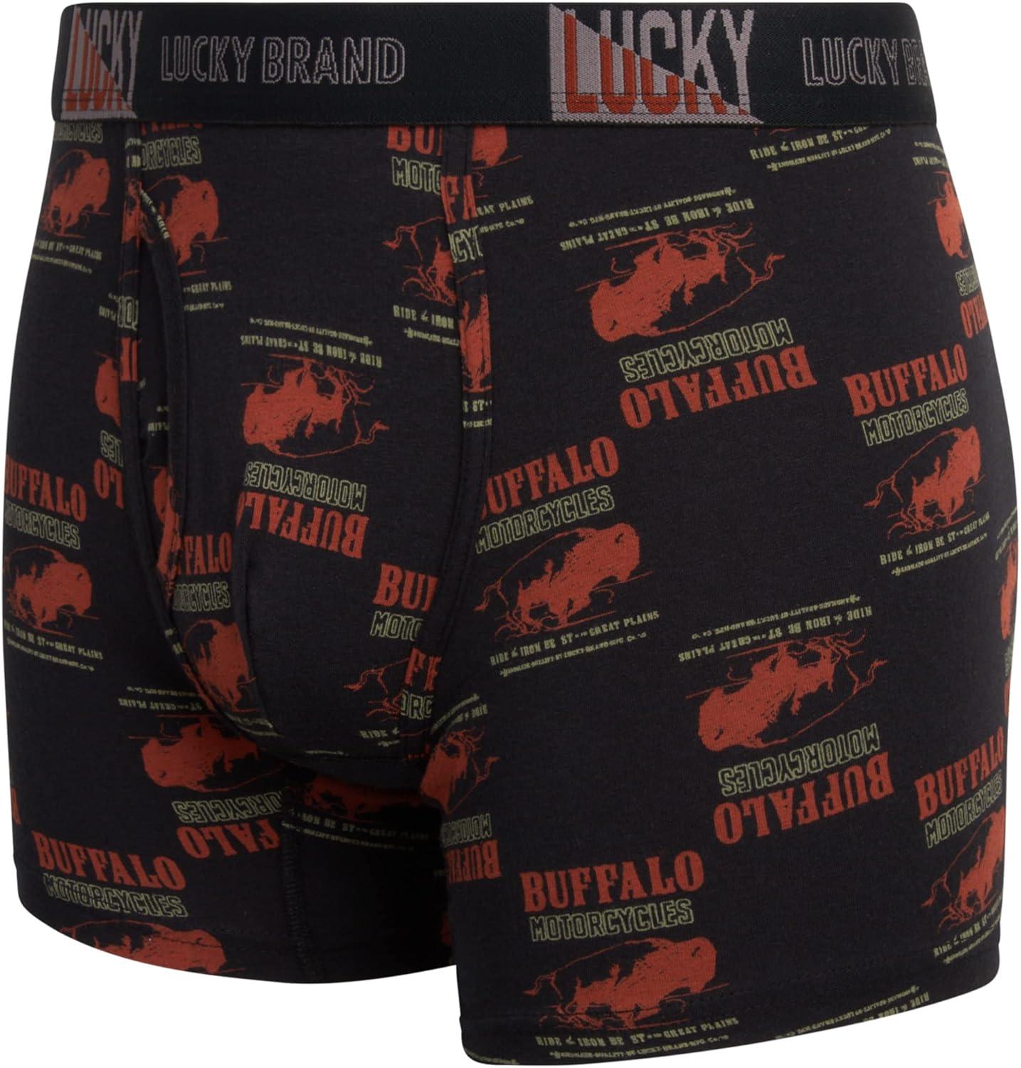 Lucky Brand Men’s Boxer Briefs – 3 Pack Soft Stretch Casual Men’s Underwear with Functional Fly Pouch Boxers (S-2XL)(Jet Black/Jet Black Print/Tandori Spice)