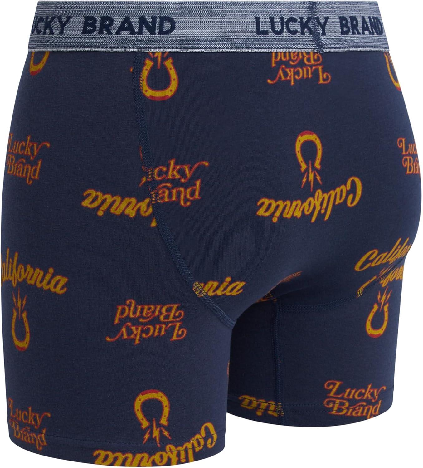 Lucky Brand Men’s Boxer Briefs – 3 Pack Soft Stretch Casual Men’s Underwear with Functional Fly Pouch Boxers (S-2XL)(Red Ochre/Indigo Print/Vintage Indigo)
