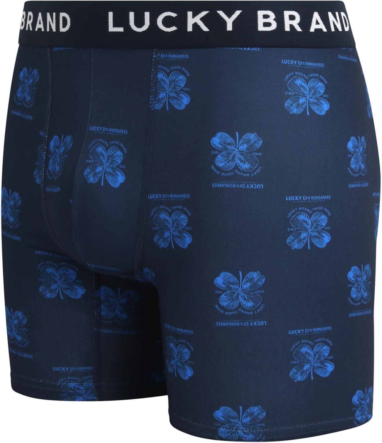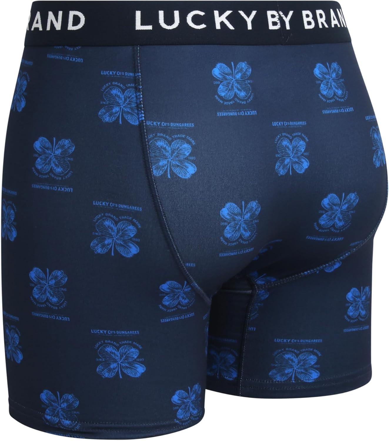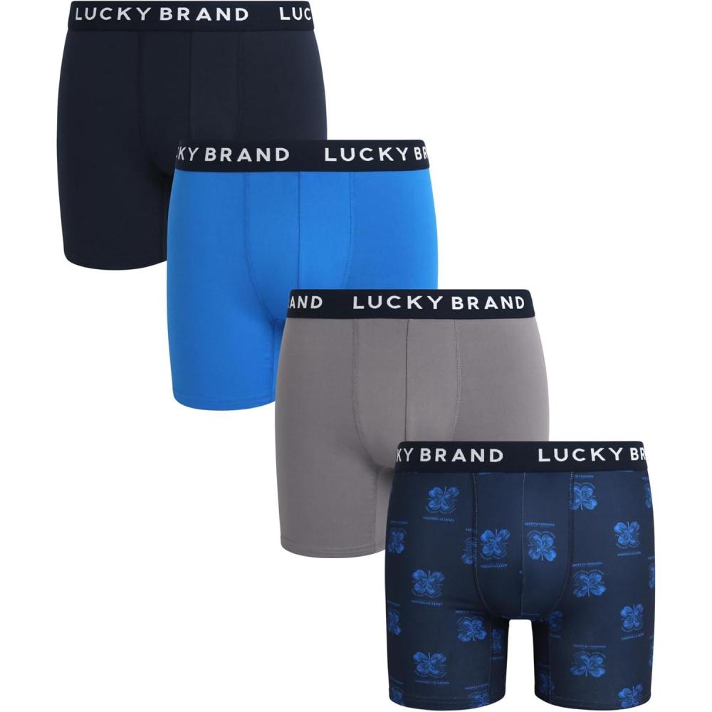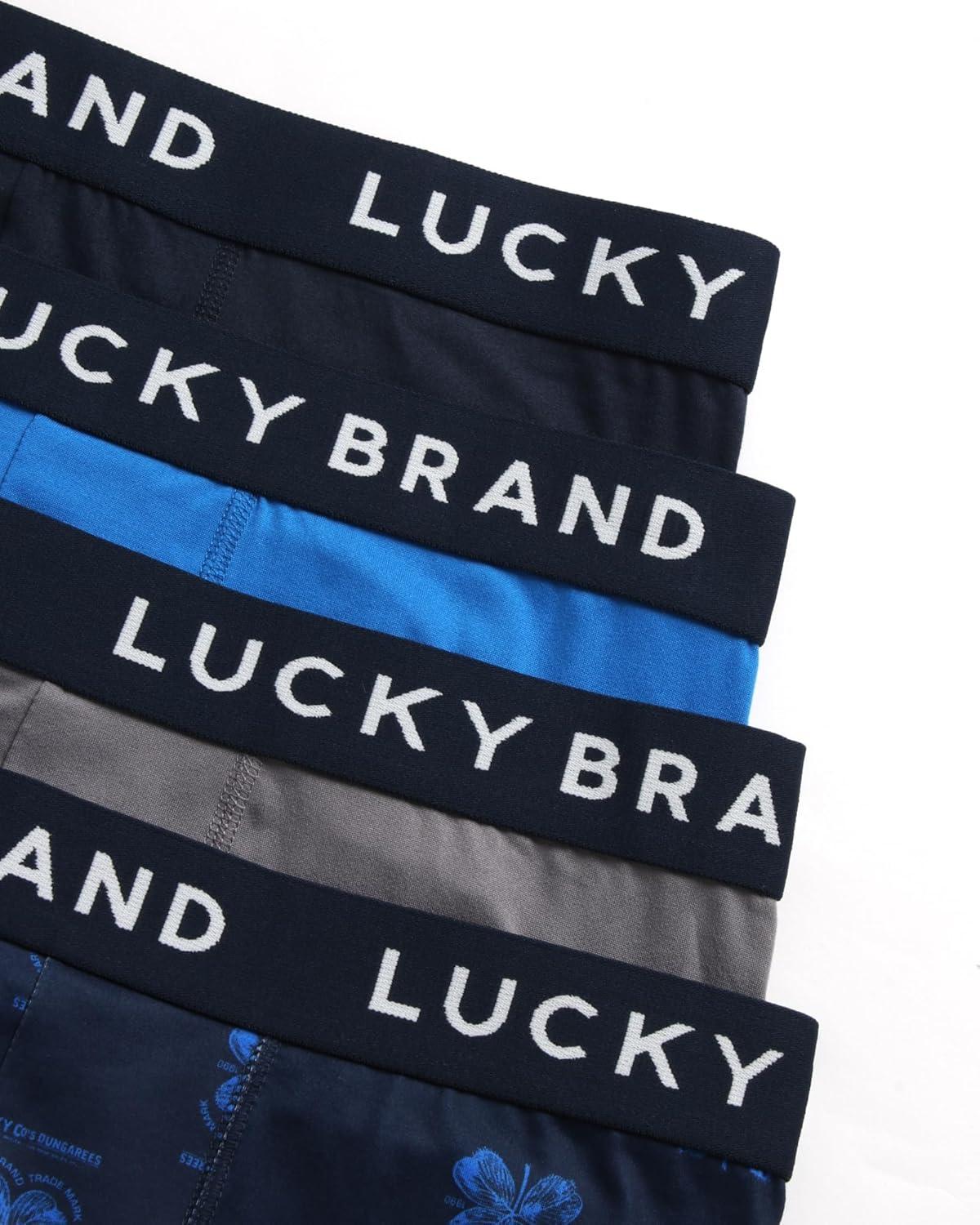 Lucky Brand Mens Boxer Briefs – 4 Pack Sport Soft Boxers for Men with No Fly Pouch – Performance Mens Underwear Boxer Briefs(Dark Grey/Medium Grey/Mood Indigo Print/Blue)