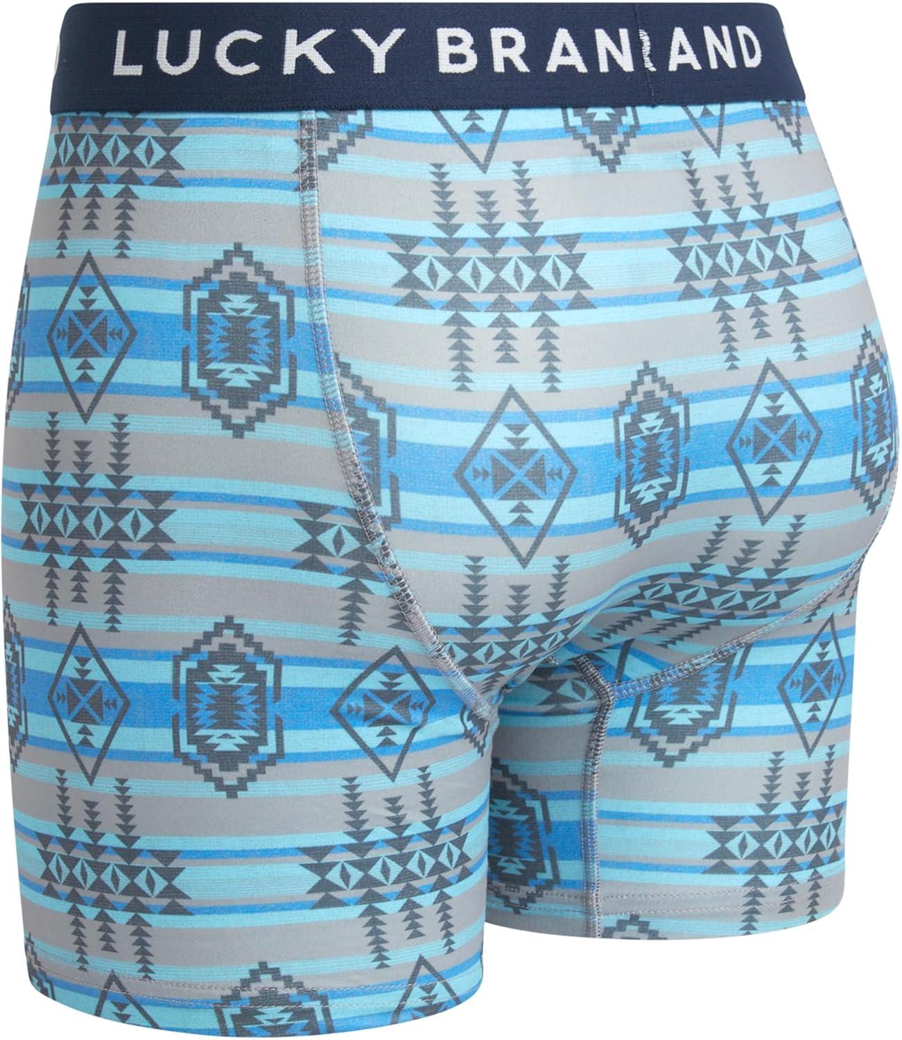 Lucky Brand Mens Boxer Briefs – 4 Pack Sport Soft Boxers for Men with No Fly Pouch – Performance Mens Underwear Boxer Briefs(Mood Indigo/Dusk Blue/Alloy Print/Smoked Pearl)