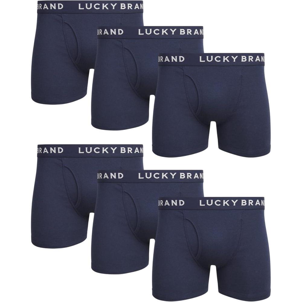 Lucky Brand Mens Boxer Briefs – 6 Pack Classic Mens Underwear Boxer Briefs with Functional Fly – Soft Cotton Boxers for Men(Solid Navy/Blue)