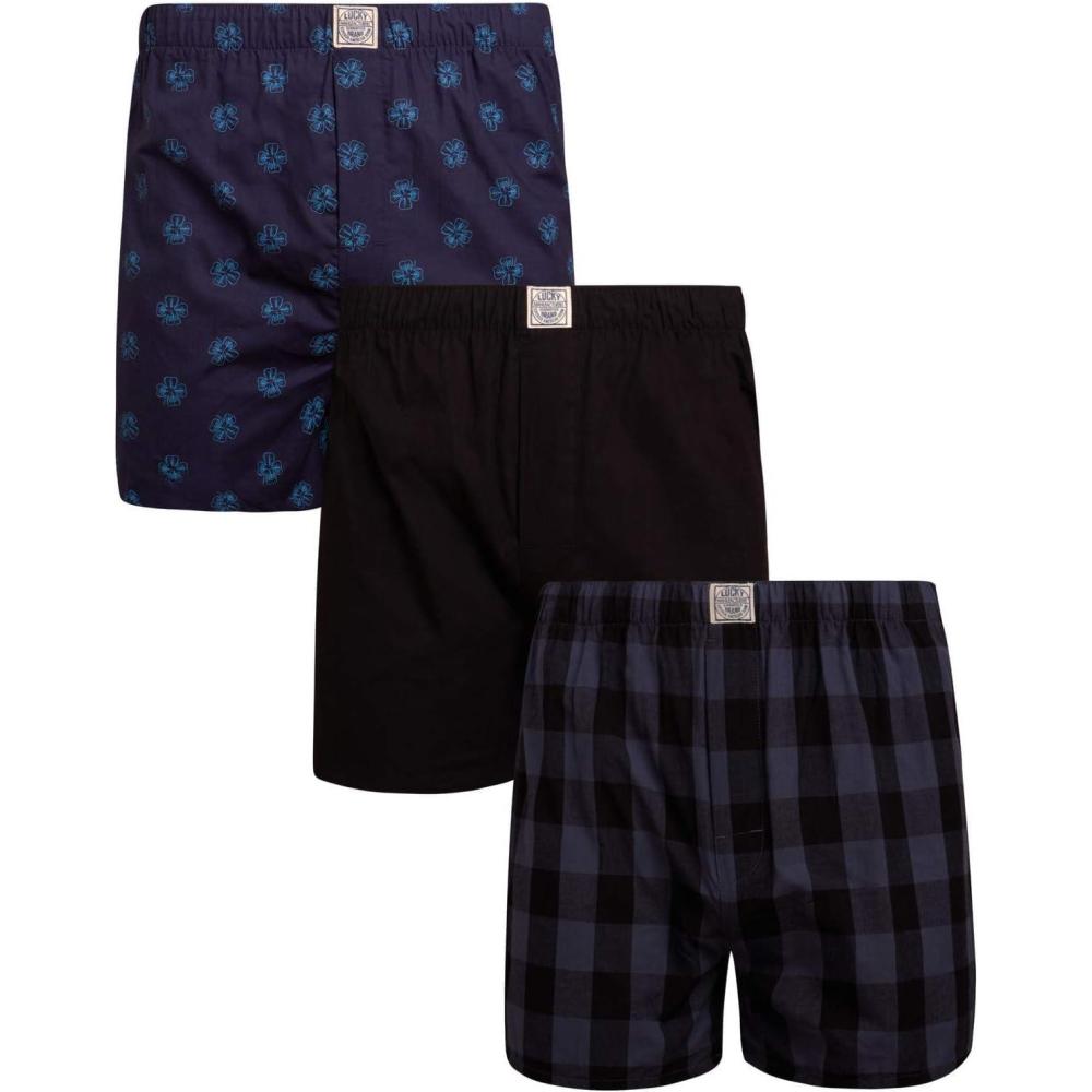 Lucky Brand Mens Boxer Shorts – 3 Pack Woven Cotton Boxers for Men with Functional Fly – Lightweight Mens Underwear Boxers(Indigo Plaid/Black/Indigo Print)