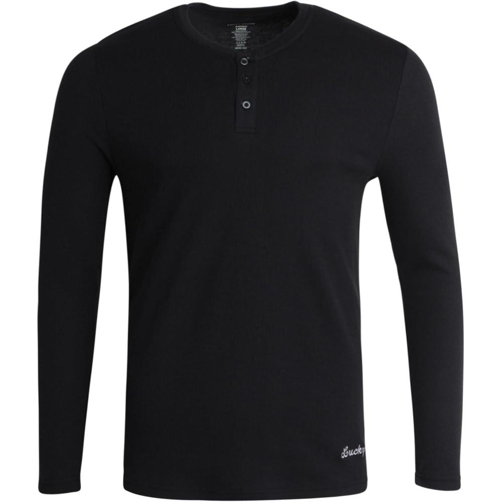 Lucky Brand Men’s Henley Shirt – Long Sleeve Waffle Knit Cotton Henley Thermal Shirt – Undershirts for Men(Jet Black)