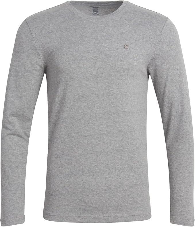 Lucky Brand Mens Long Sleeve Tee Shirts – 2 Pack Soft Crewneck Cotton Tees for Men – Lightweight Mens Shirts for Layering(White/Heather Grey)