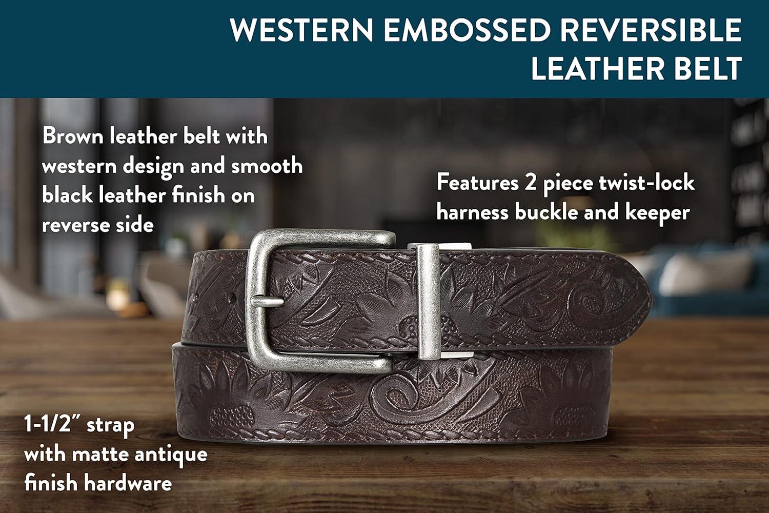 Lucky Brand Men’s Reversible Genuine Leather Belt | Classic | Casual | Dress | Everyday | Western | Metal Buckle(Western Reversible – Brown/Black)