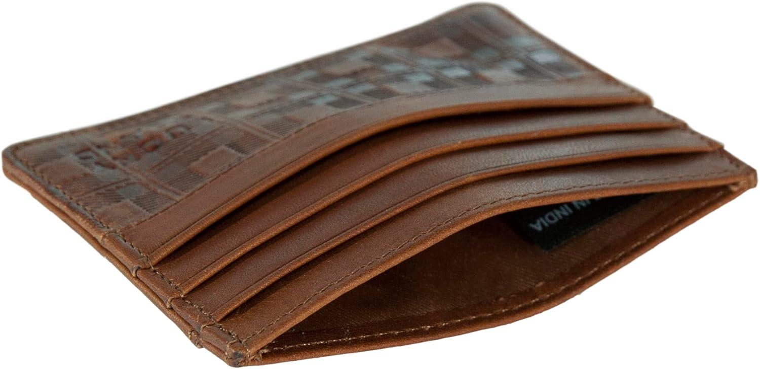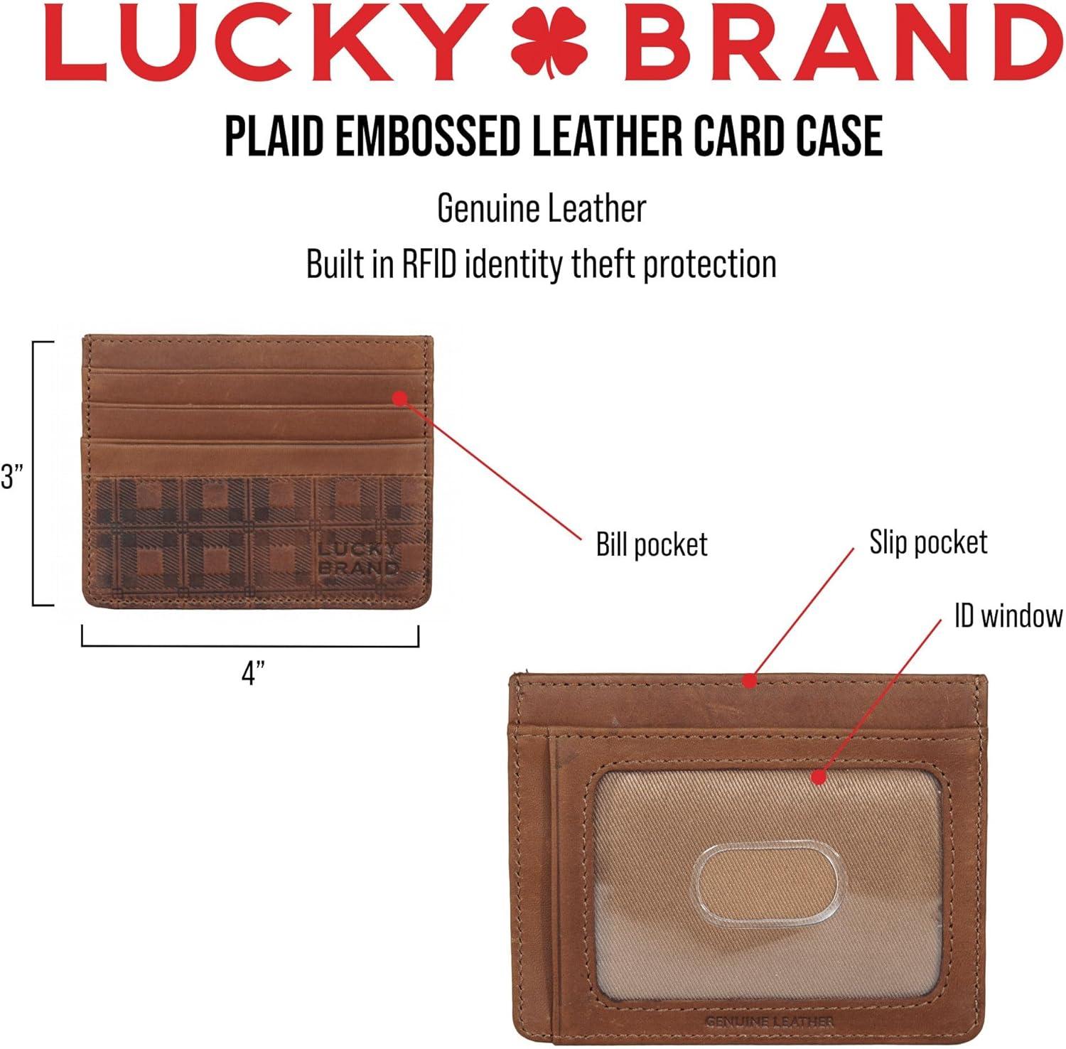 Lucky Brand Men’s Slim Wallet Case | Id Window | Card Slot | Minimalist Design | Lightweight | Leather(Plaid Embossed Leather – Brown)