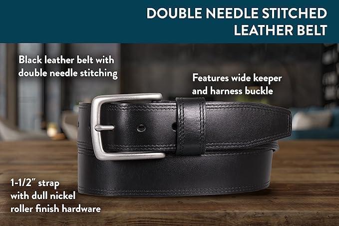 Lucky Brand Men’s Stitched Leather Belt | Classic | Casual | Dress | Everyday | Western | Genuine Leather | Metal Buckle(Double Stitch – Black)