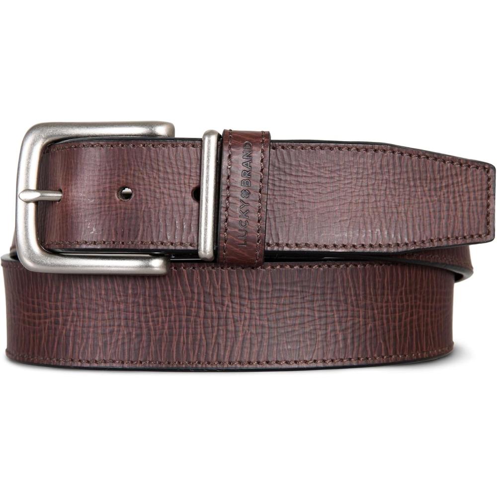 Lucky Brand Men’s Stitched Leather Belt | Classic | Casual | Dress | Everyday | Western | Genuine Leather | Metal Buckle(Leather Keeper – Brown)