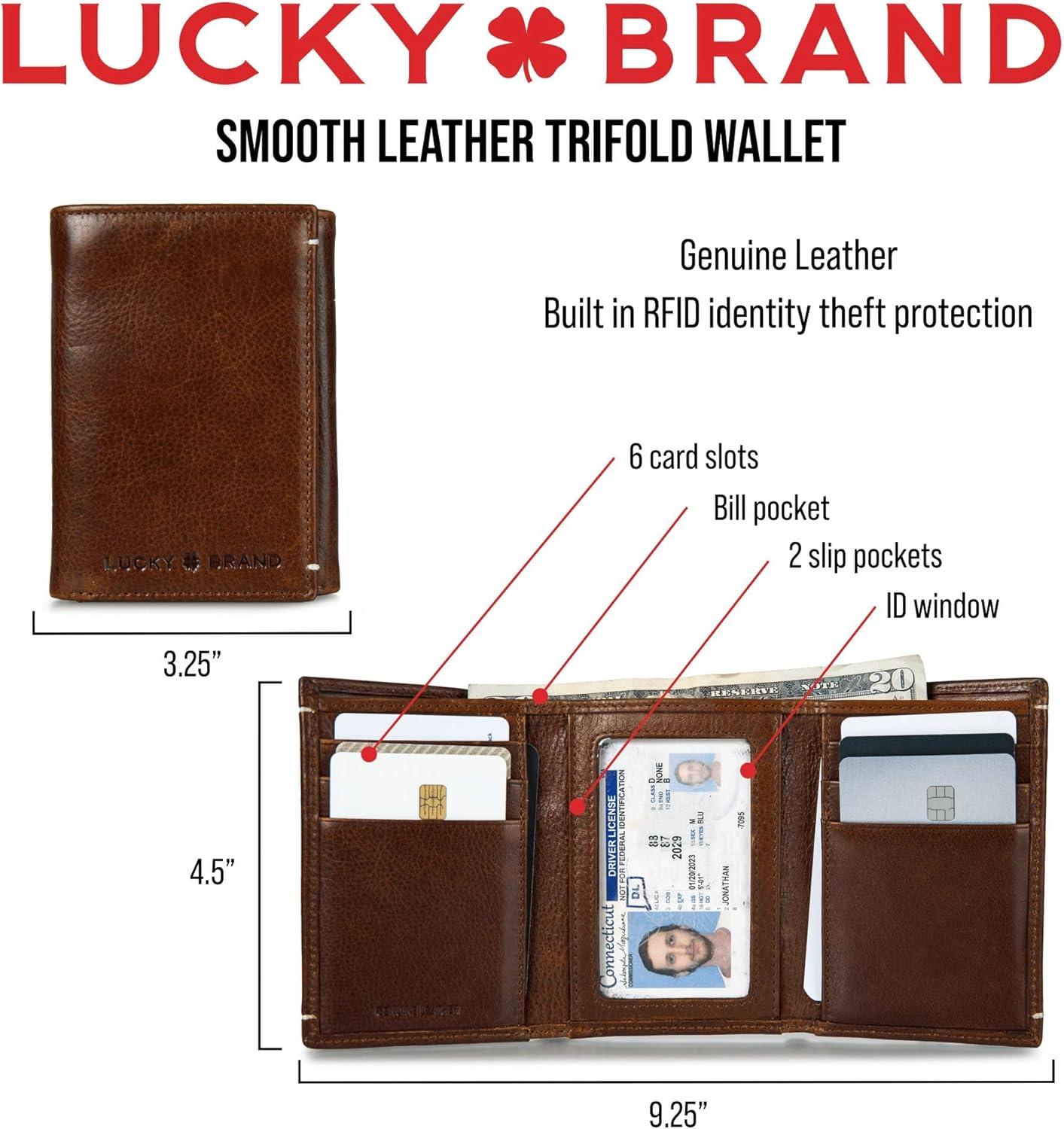 Lucky Brand Men’s Trifold Wallet | Id Window | Card Slots | Leather | Organization | Durable | Stylish(Smooth Leather – Black)