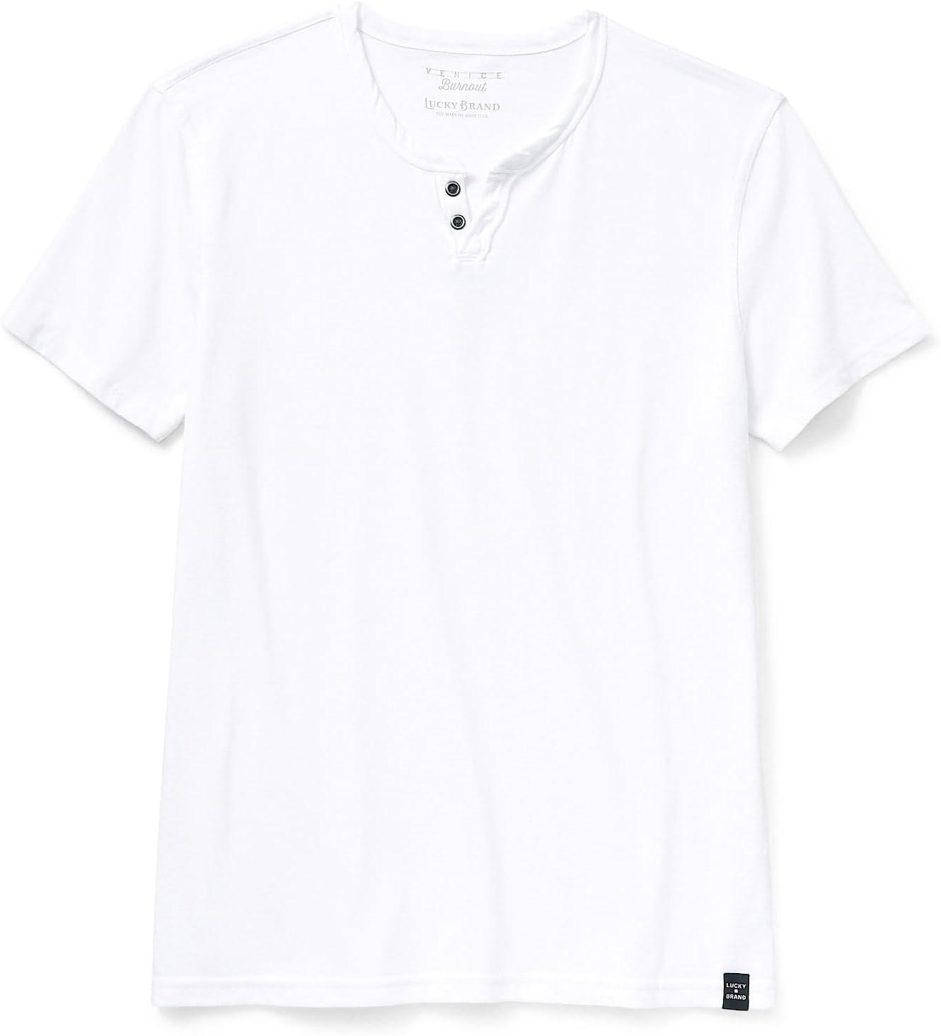 Lucky Brand Mens Venice Burnout Notch Neck Tee Shirt(Bright White)