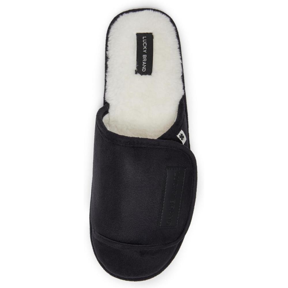 Lucky Brand Micro-Suede Scuff Indoor Slippers for Men with Plush Lining(Black Flap)