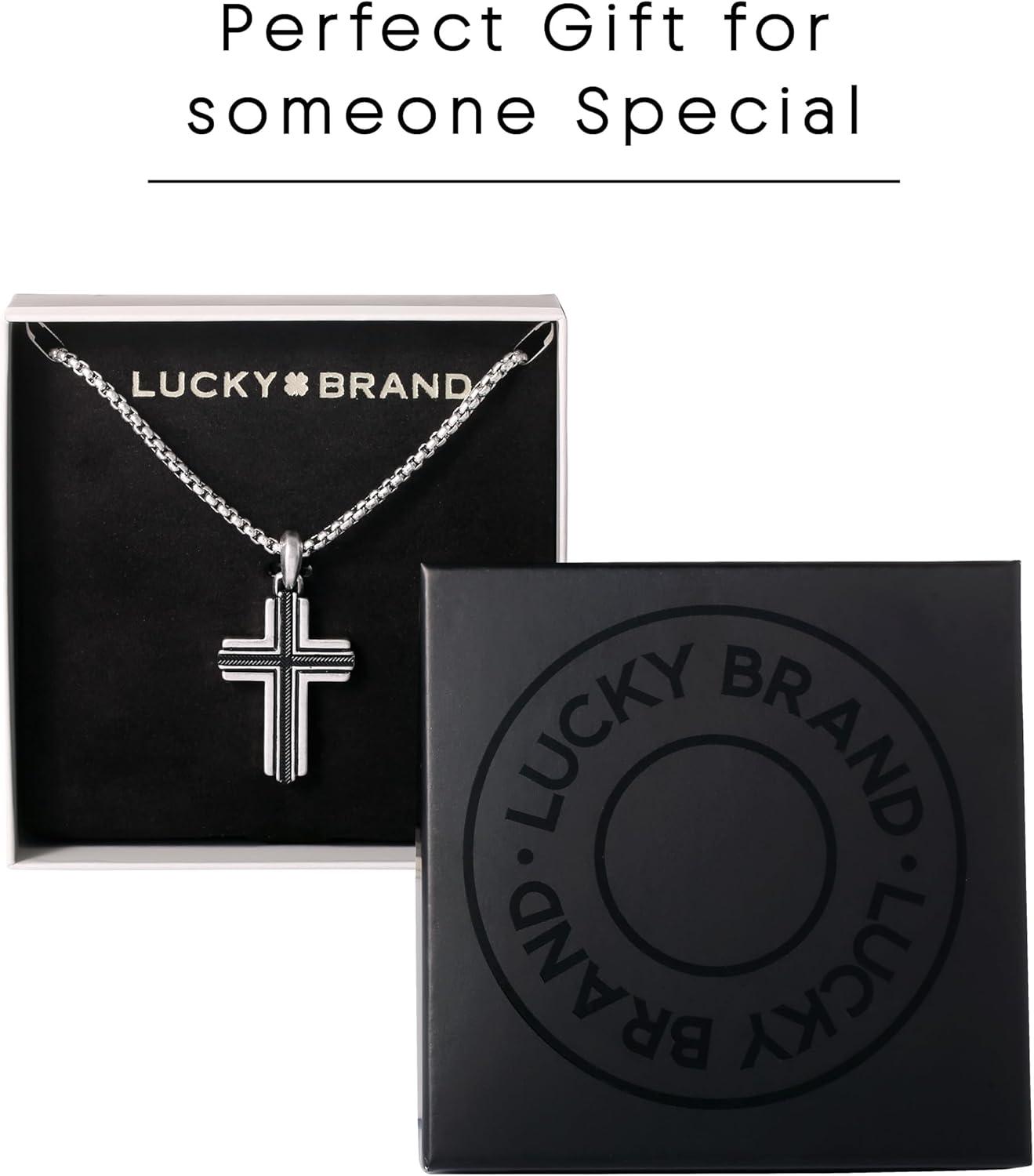 Lucky Brand Stainless Steel Cross Necklace for Men 24″, Two-Tone Pendant Necklace, Cross Jewelry