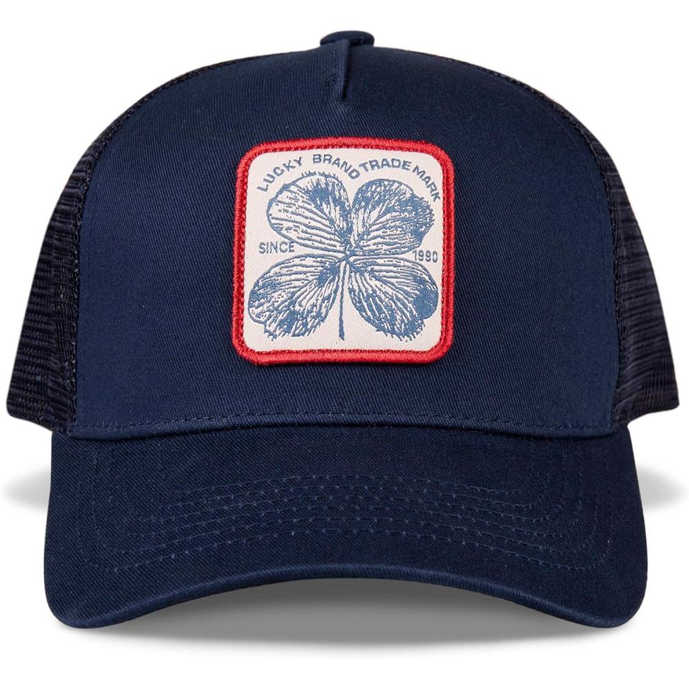 Lucky Brand Trucker Hat | Snapback | Adjustable | Mesh Back | Baseball Cap | Golf | Fishing | American Heritage(Clover Patch – Navy)