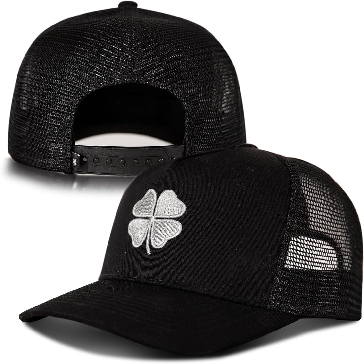 Lucky Brand Trucker Hat | Snapback | Adjustable | Mesh Back | Retro | Baseball Cap | Golf | Fishing | American Heritage(3d Embroidered Clover – Black)