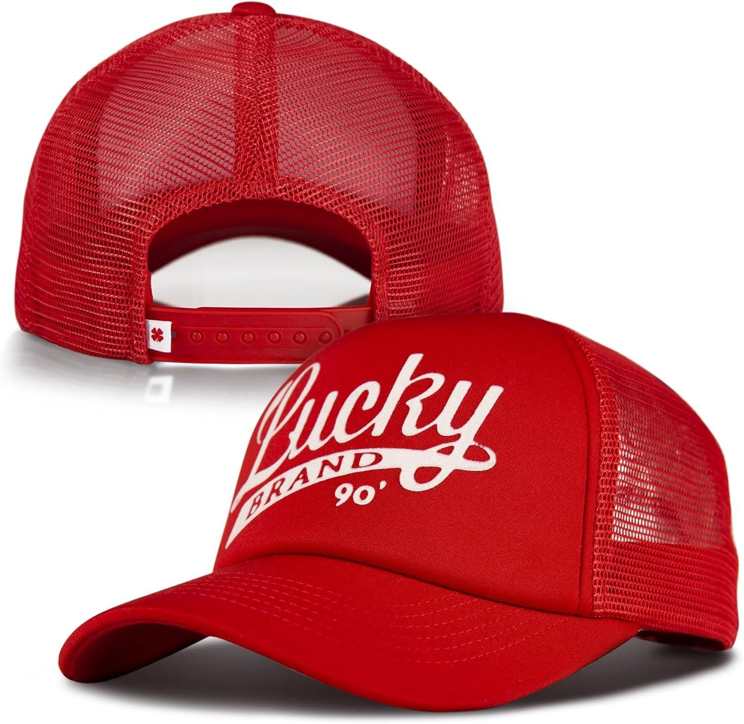 Lucky Brand Trucker Hat | Snapback | Adjustable | Mesh Back | Retro | Baseball Cap | Golf | Fishing | American Heritage(Lucky Print – Red)