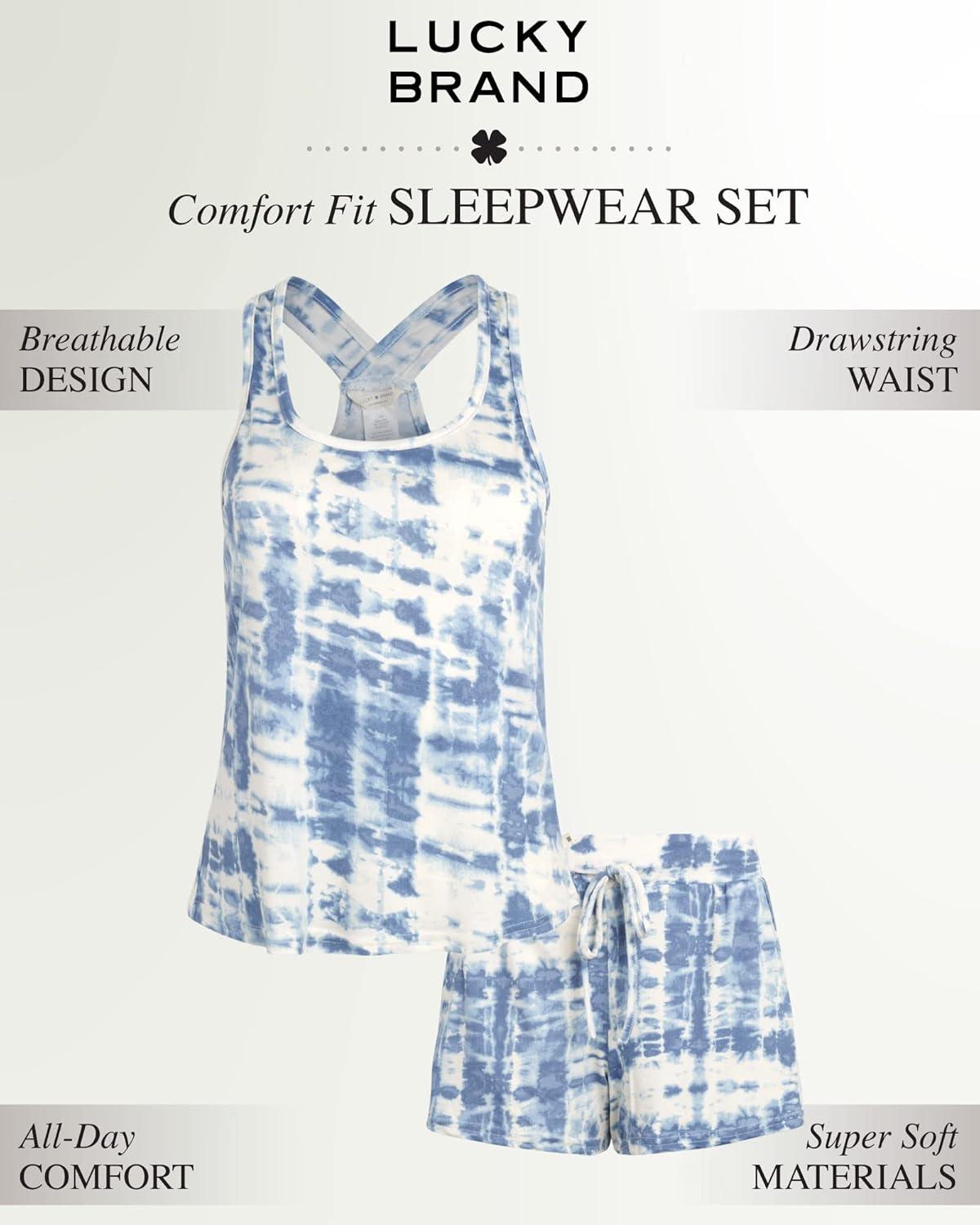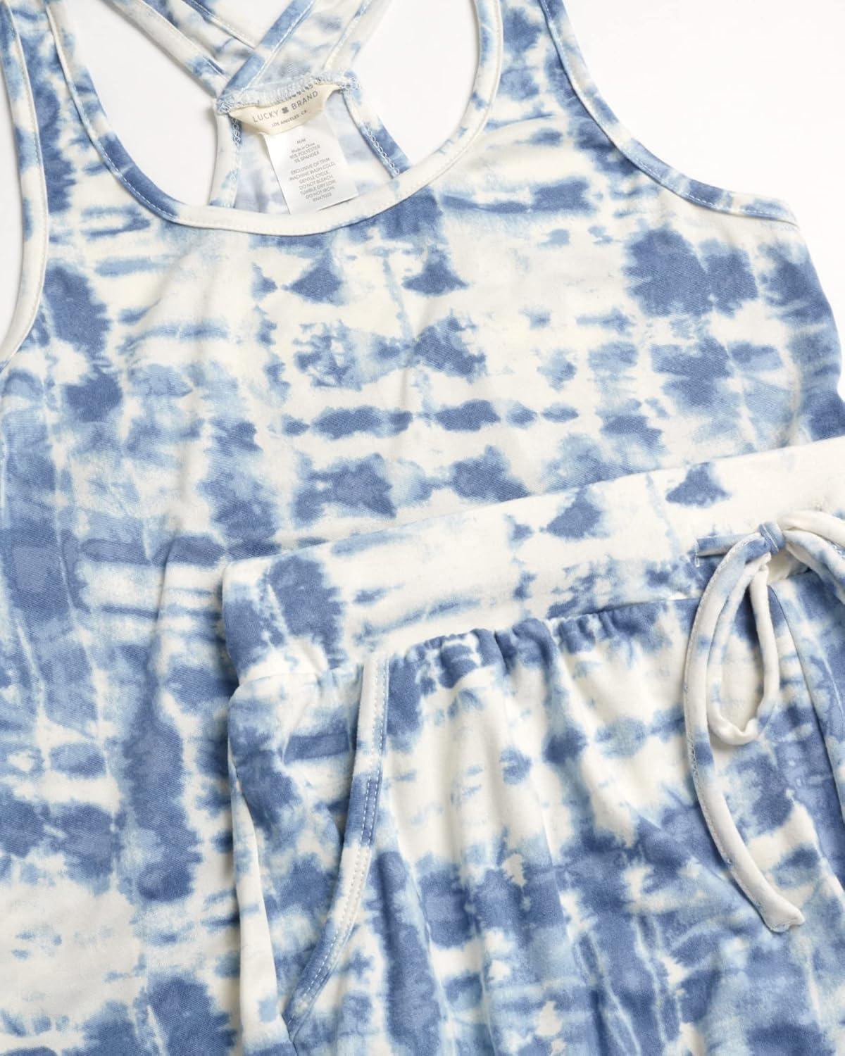 Lucky Brand Womens 2 Piece Lounge Set, Lightweight Soft Pajamas Sleepwear Crossback Tank Top and Sleep Shorts(Blue Tie Dye)