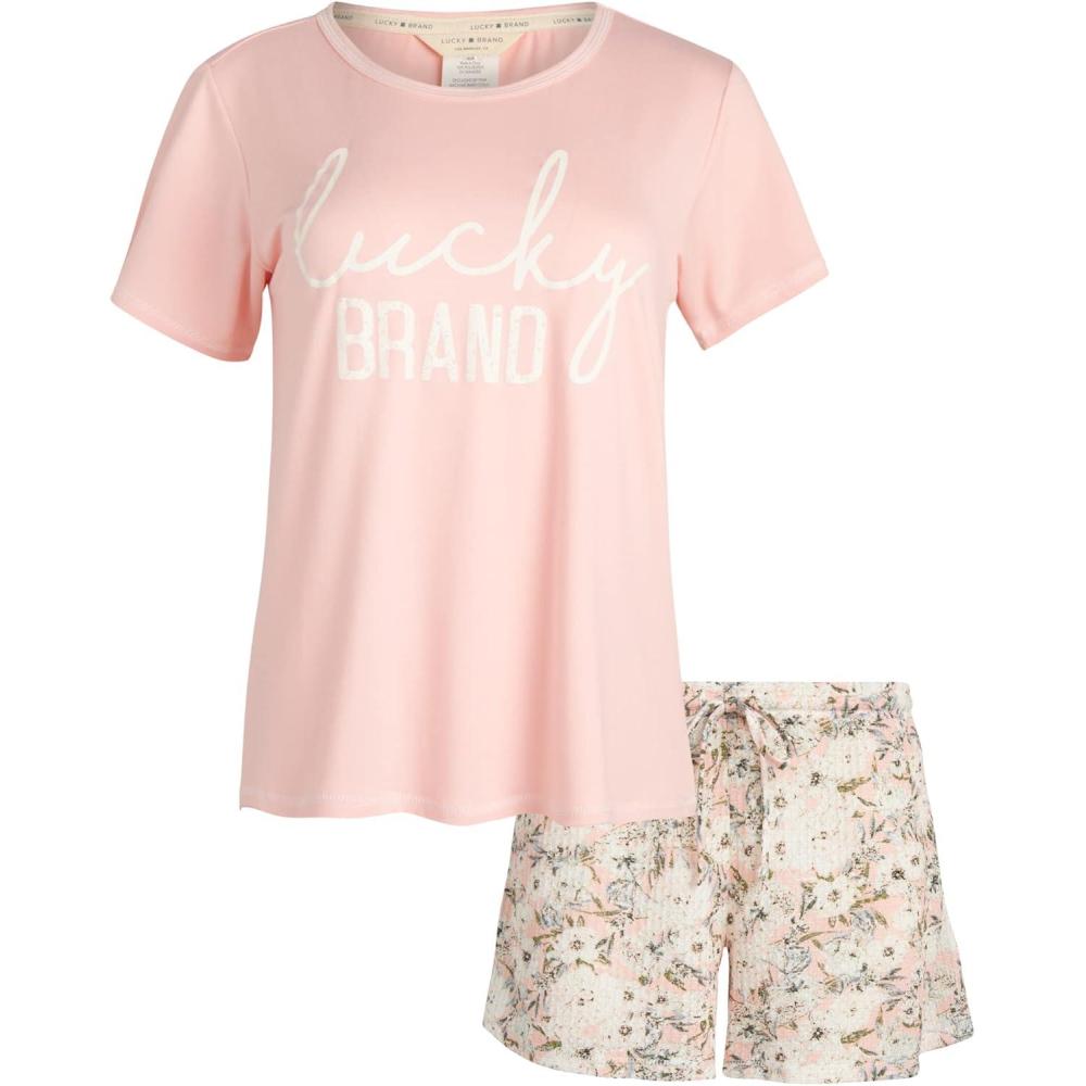 Lucky Brand Women’s 2 Piece Pajama Set, Roll Sleeve Top & Shorts, Casual Sleepwear and Loungewear, Cozy Soft Pjs(Peach)