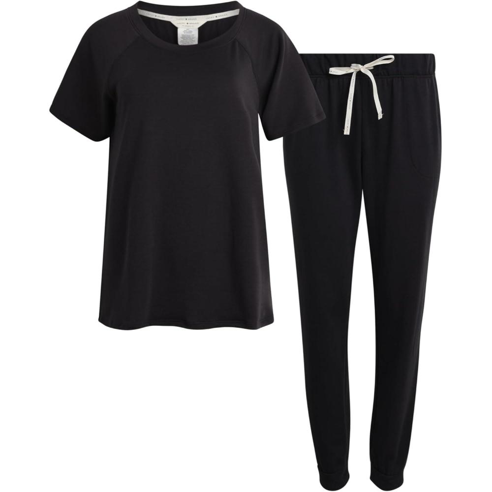 Este conjunto de pijama para mujer de Lucky Brand incluye una camiseta de manga corta suave y pantalones estilo jogger con cintura ajustable y puños elásticos, ofreciendo comodidad ligera y transpirable ideal para la primavera y el verano. El ajuste relajado con tela elástica permite libertad de movimiento, siendo perfecto para descansar, dormir o usar en casa de forma casual. Los bolsillos laterales funcionales en los pantalones jogger añaden practicidad, mientras que la tela liviana brinda una sensación suave al tacto con propiedades amigables con la humedad para las noches más cálidas. Diseñado para mujeres, adolescentes y jóvenes, este conjunto de dos piezas combina simplicidad, confort y estilo de temporada con una silueta clásica.