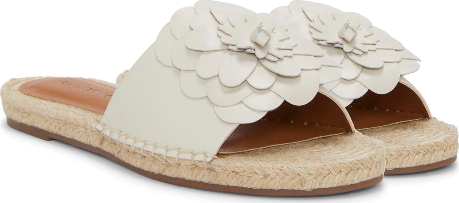 Slip into the Biricha from Lucky Brand. Featuring a decorative flower on a leather upper, paired with a rope wrapped flat footbed, this sandal is perfect for a day at the pool or the beach.