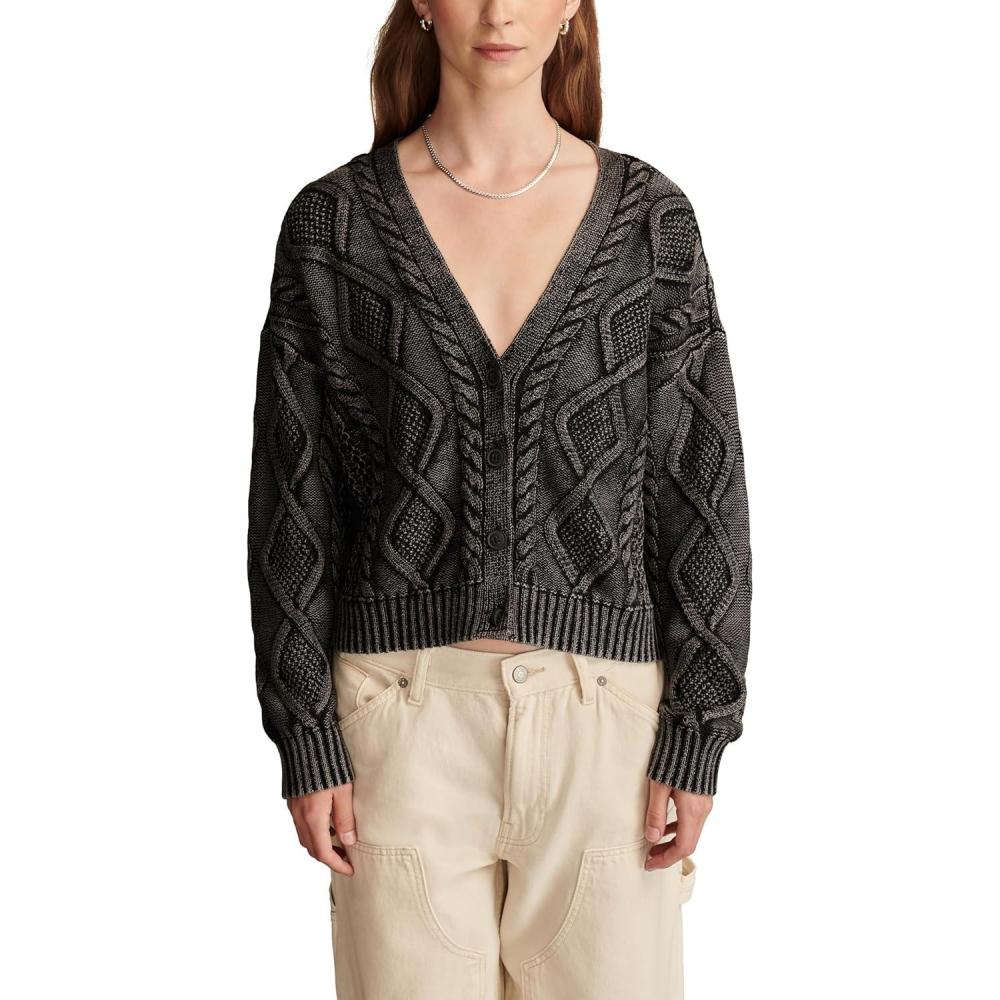 Lucky Brand Women’s Cable Stitch Long Sleeve Cardi(Dark Black)