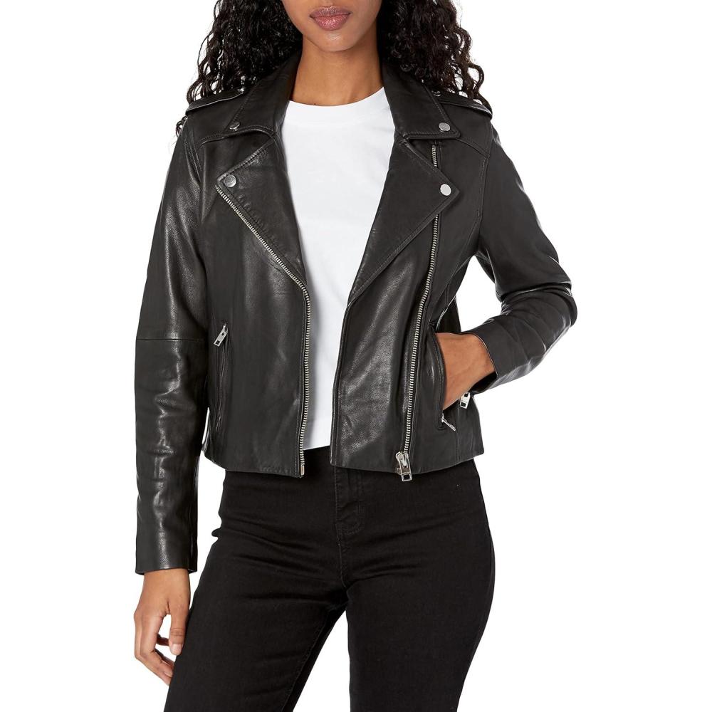 Lucky Brand womens Classic Leather Moto Jacket(Washed Black)