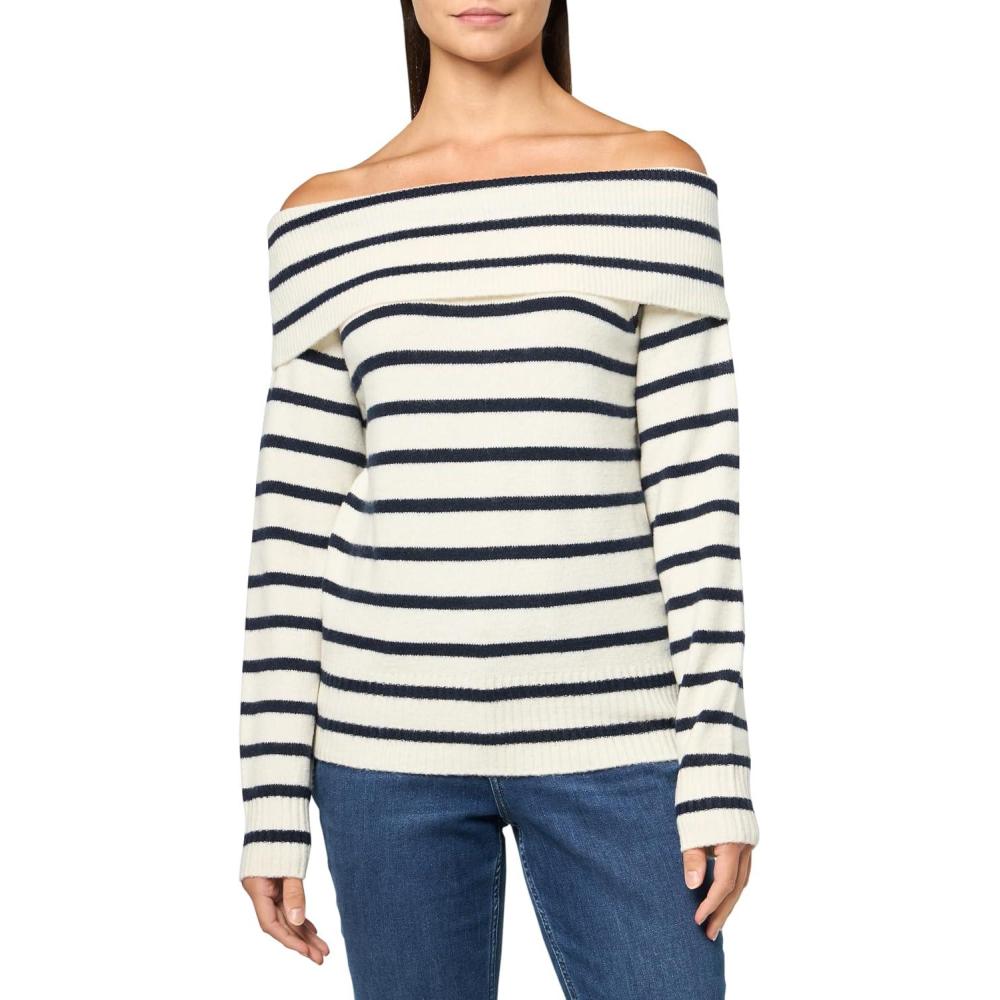 Lucky Brand Women’s Cloud Soft Off The Shoulder Sweater(Cadet Navy Multi Stripe)