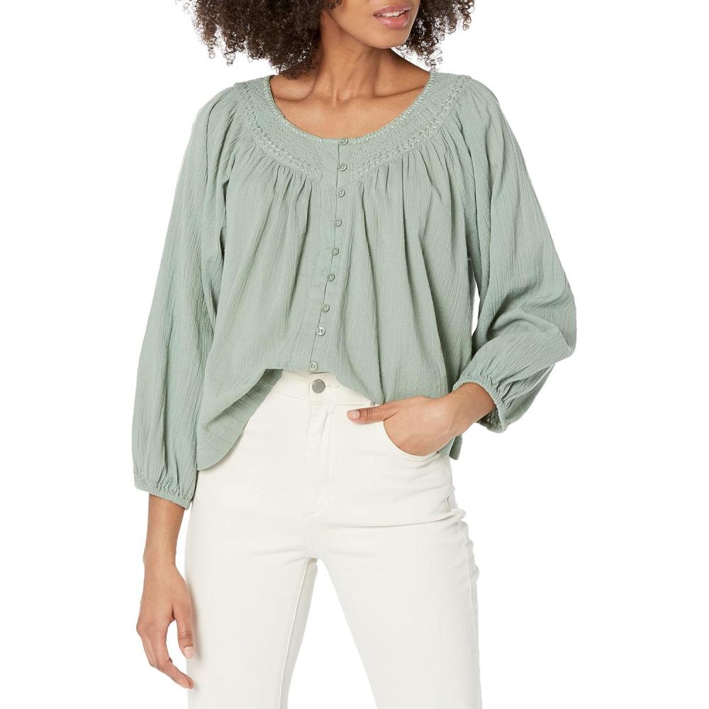 Lucky Brand Women’s Embroidered Peasant Blouse(Lily Pad)