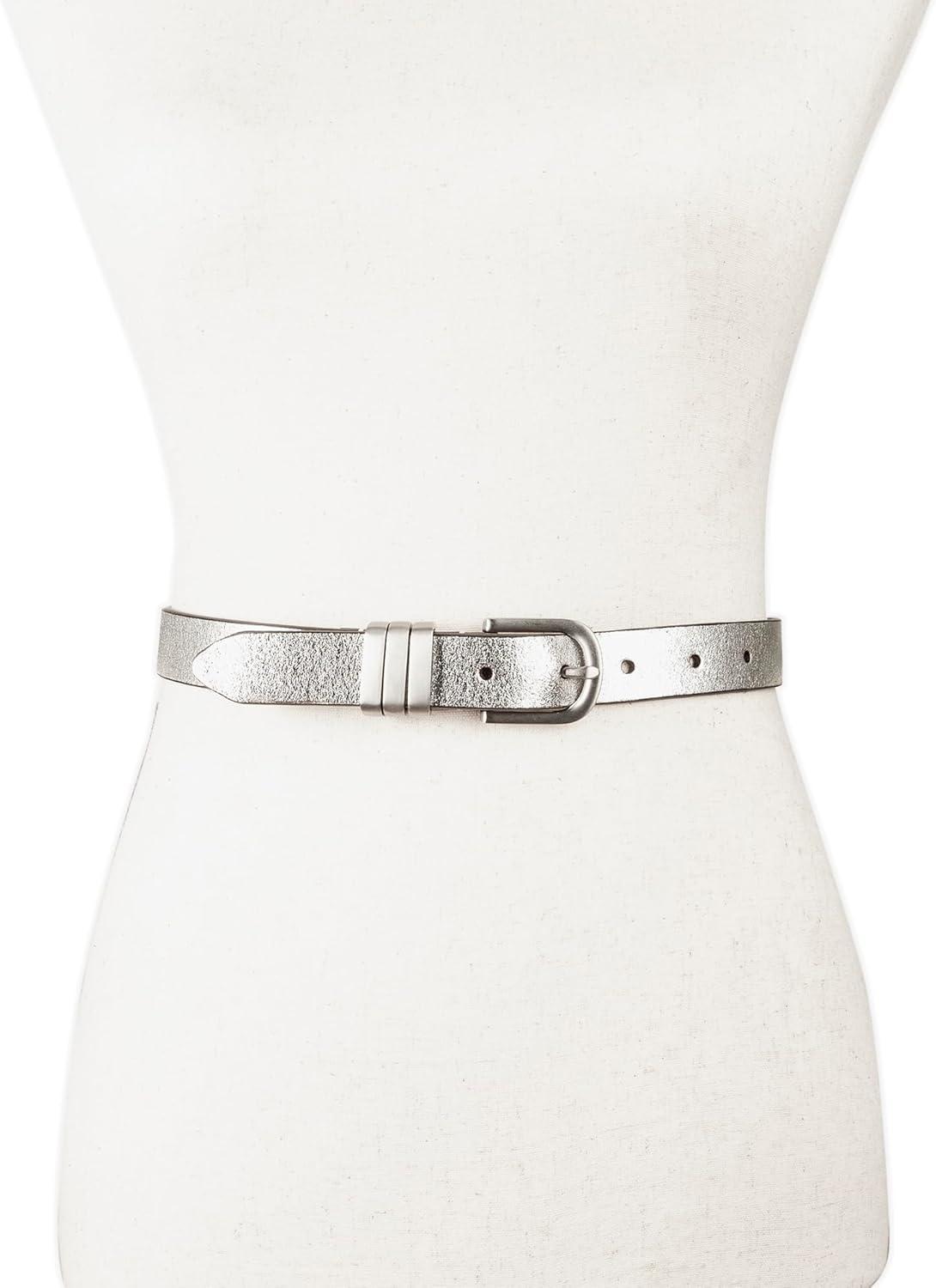 Lucky Brand Women’s Fashion Leather Belt | Stylish | Trend | Classic | Modern | Jean | Pant | Skirt | Dress(Metallic Triple Keeper – Silver)
